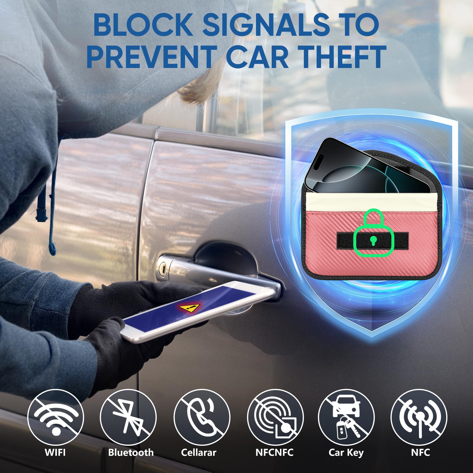 Why You May Need One: Get your car protected; TICONN faraday bag provides a complete signal blocker for your vehicle key fob; This prevents thieves from picking up and relaying signals from your key, to shield against break-ins and keyless ignition theft