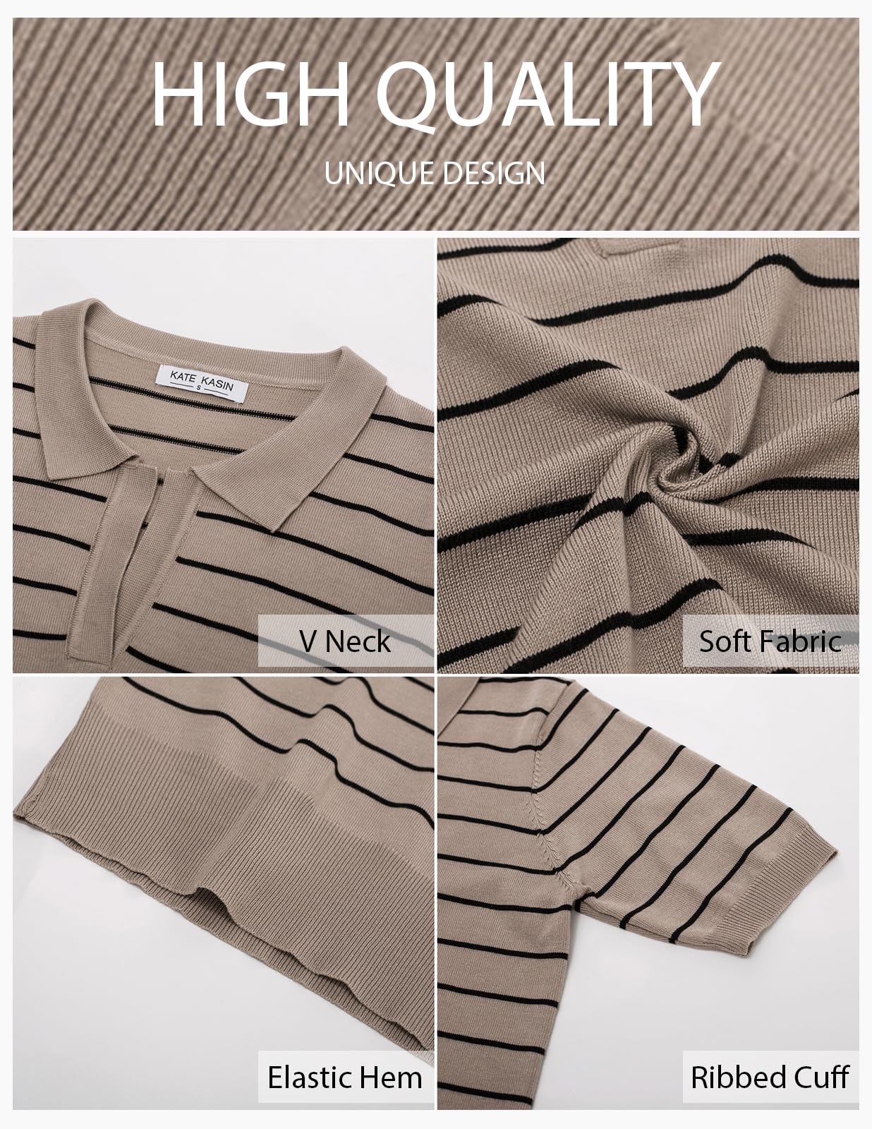 Features: V-neck short-sleeved, loose, casual, striped, ribbed knit pullover. The classic lapel sweater never goes out of style
