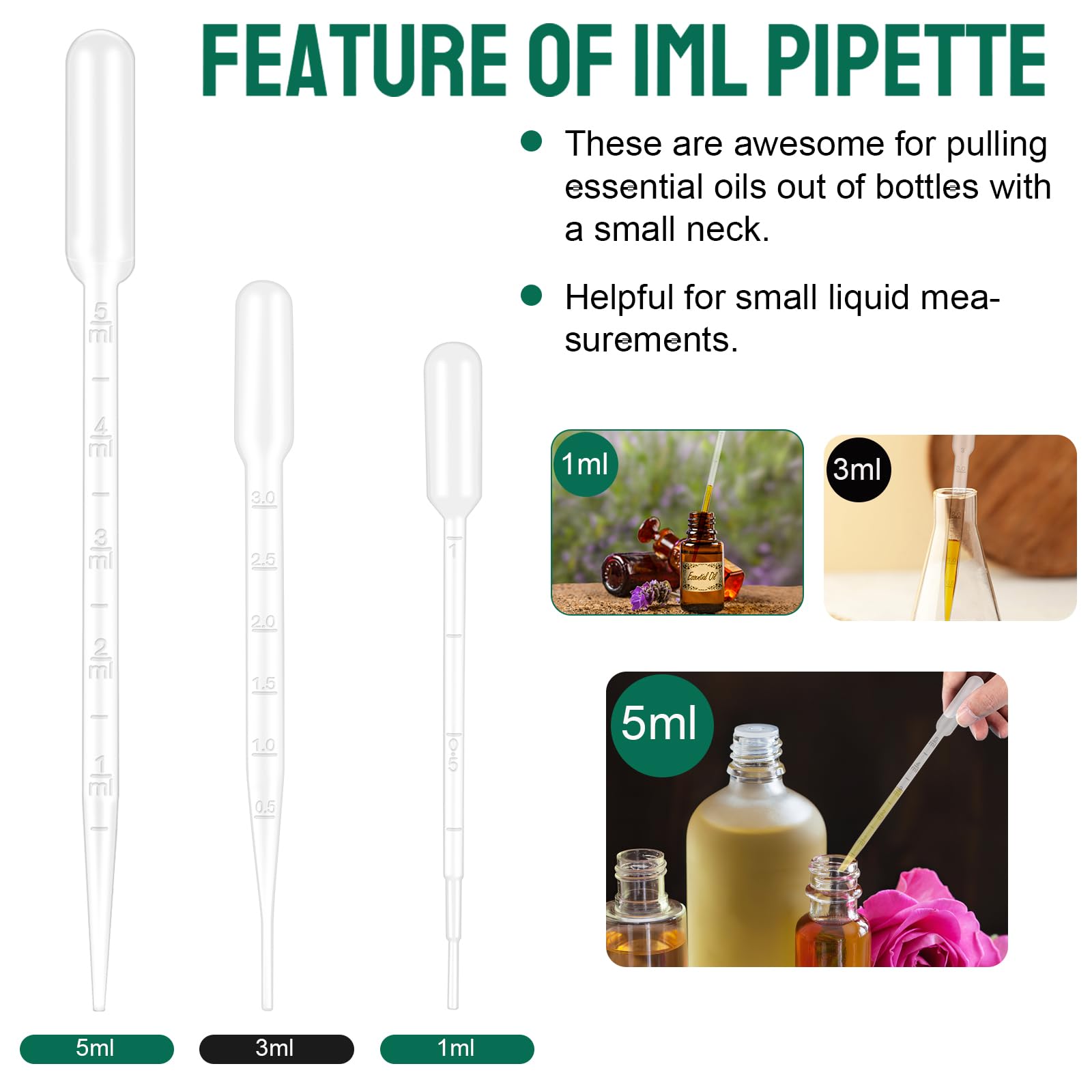 1 ML PIPETTE: Our 1ML disposable droppers pipettes set includes 200 pieces of clear plastic dropper pipettes. These lab pipettes offer enhanced maneuverability, enabling more accurate and controlled measurements, making them ideal for various applications.