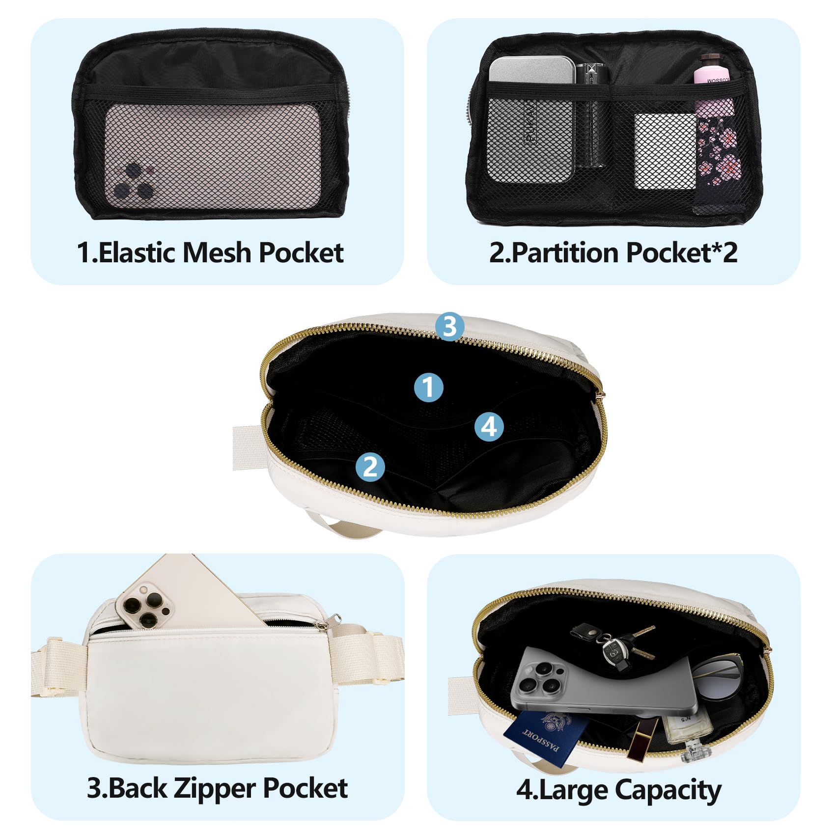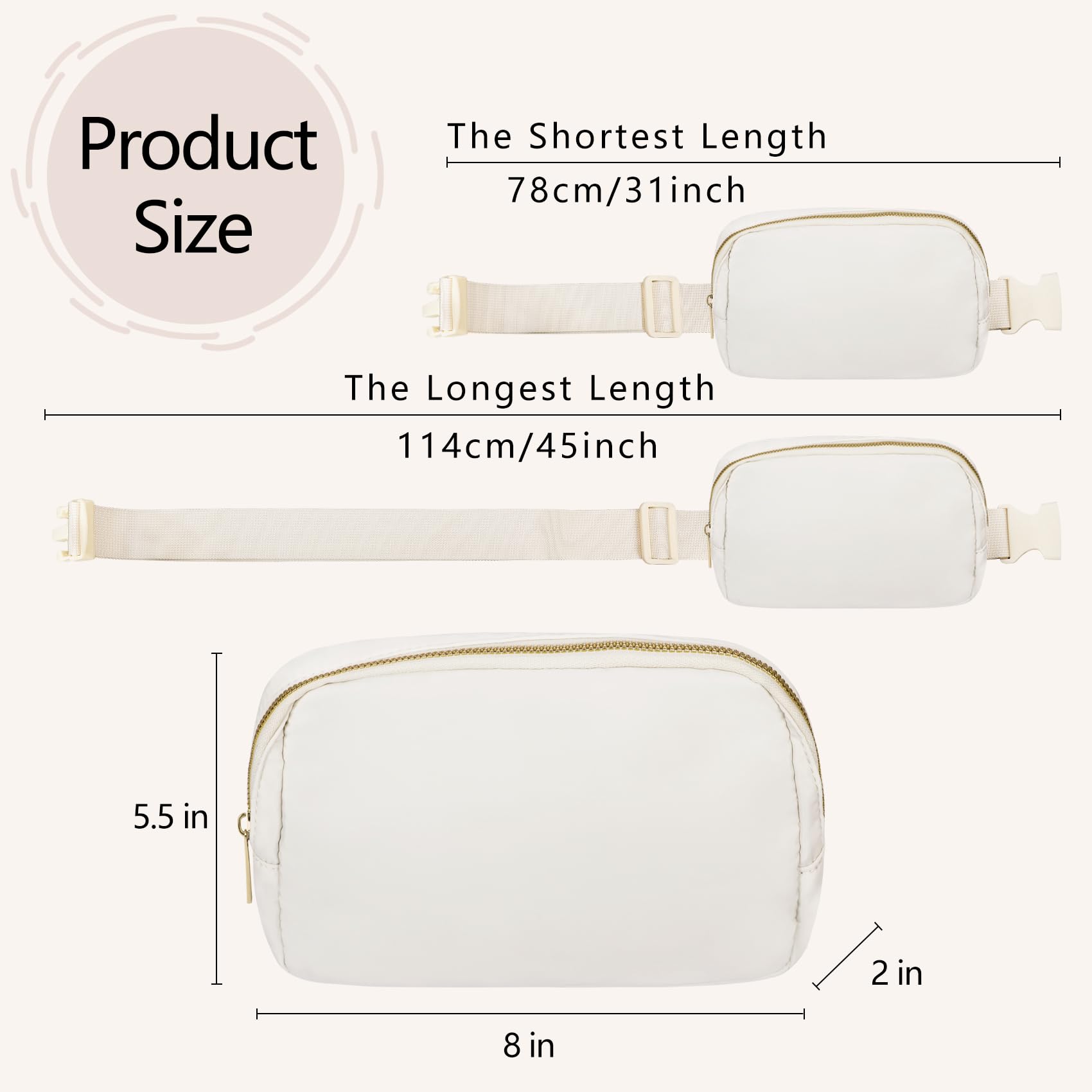 Large Capacity:Spacious main pocket and back pocket with zipper closures keep all of your essentials secure. You can put key, cosmetics, mobile phones and other items in this waist pack.