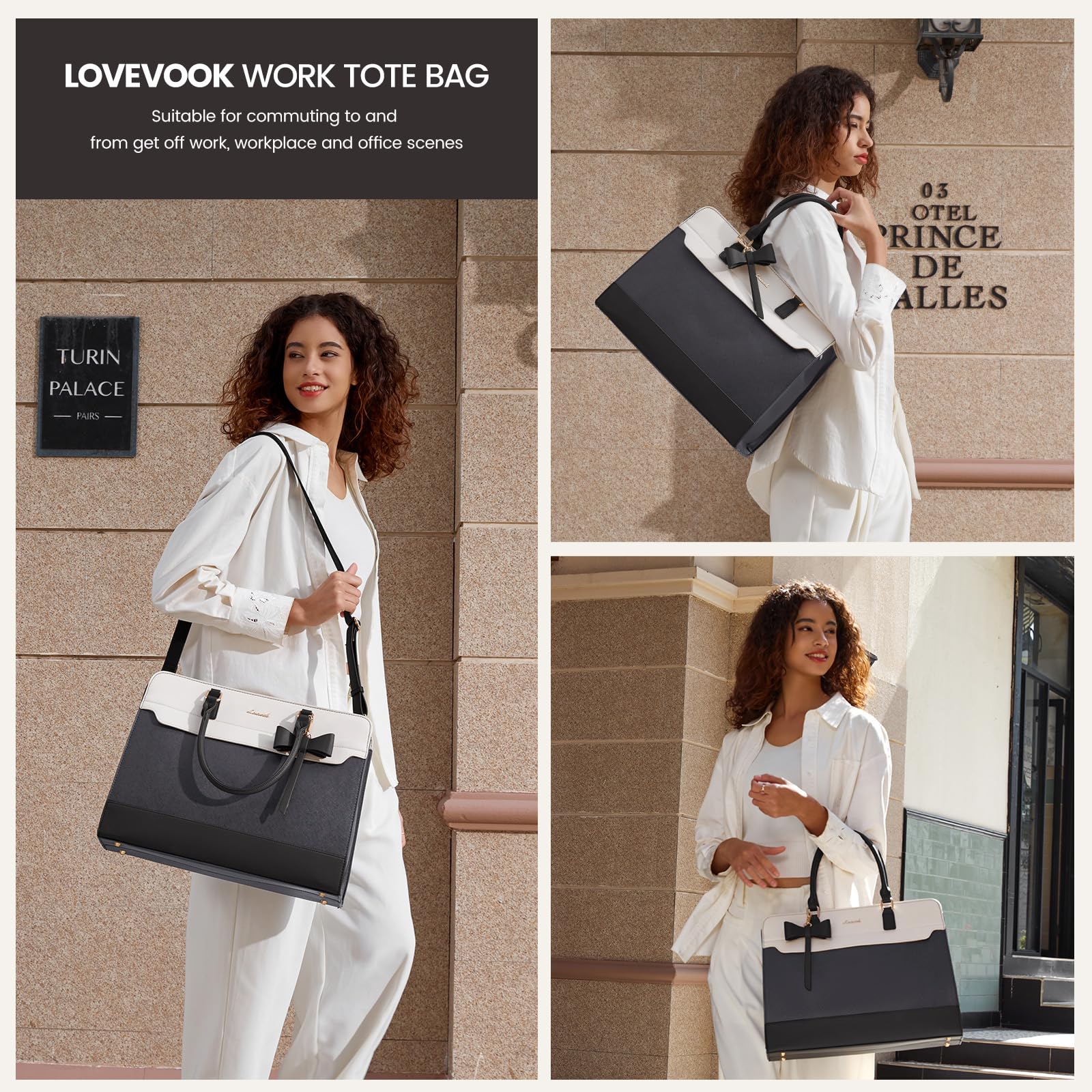 【Elegant Organizer Work Tote】:The work bags for women come with multi-compartments to meet all your work needs well. The laptop tote bag has an independent laptop compartment fits under 15.6 inch laptop and Ipad/tablet,a large main middle pocket designed for documents, book and gadgets,two small square pockets, two pen pockets,There has two side-pocket for power bank and water bottle inside. Stylish outer pocket and an anti-theft pocket,Easy access to items.