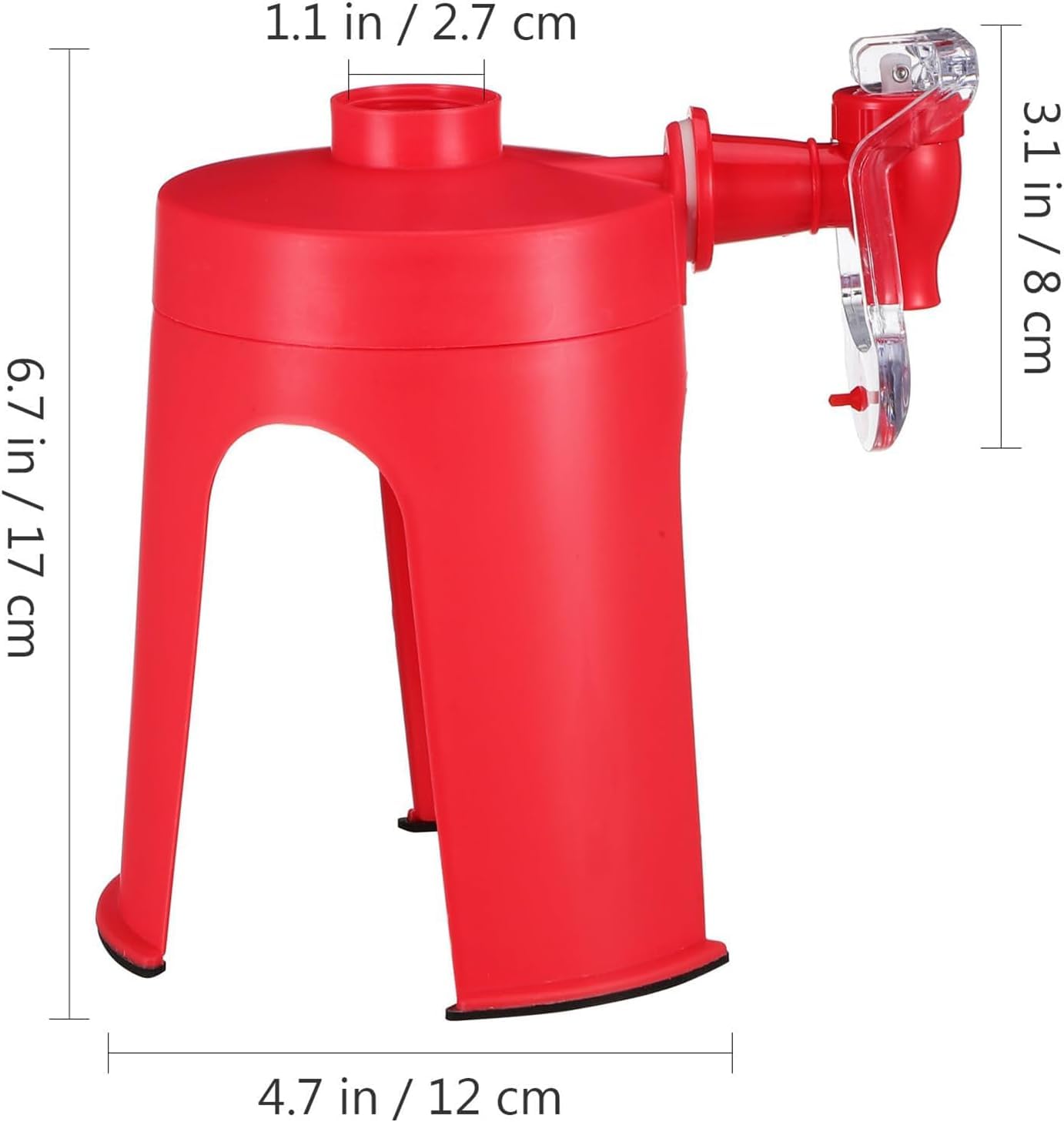 The Soda Bottle Dispenser is made of environmentally friendly plastic, which is safe and sturdy; it uses a thickened leak-proof sealing ring, which has strong sealing, prevents air leakage and water leakage, ensuring a smooth and mess-free dispensing experience. The Soda Pop Dispenser comes with a thick, non-slip tripod that's heavy-duty, keeping it stable on any surface to prevent spills and accidents. How to use: ATTENTION: Make sure that the 2 white O-rings are sealed properly on the thread of the red holder before the installation. ① Install the beverage holder first ② Upside down install the holder to the beverage bottle mouth ③ Poke a hole in the bottom of a beverage bottle with the needle ④ To pour the drink, just move the handle Warm tips: 1. When using it, first turn the product over, align the mouth of the base with the mouth of the beverage bottle, and tighten it firmly! Then flip the drink over and place it on the table for use! 2. If it is soda, you only need to pull the handle to get the drink! If there is no gas in the drink, you need to press the bottle with your hands to release the drink! 3. This product is suitable for carbonated drinks, after pouring half a bottle of Coke. The pressure inside the bottle will be relatively low. At this time, shake it gently and it can be used normally.
