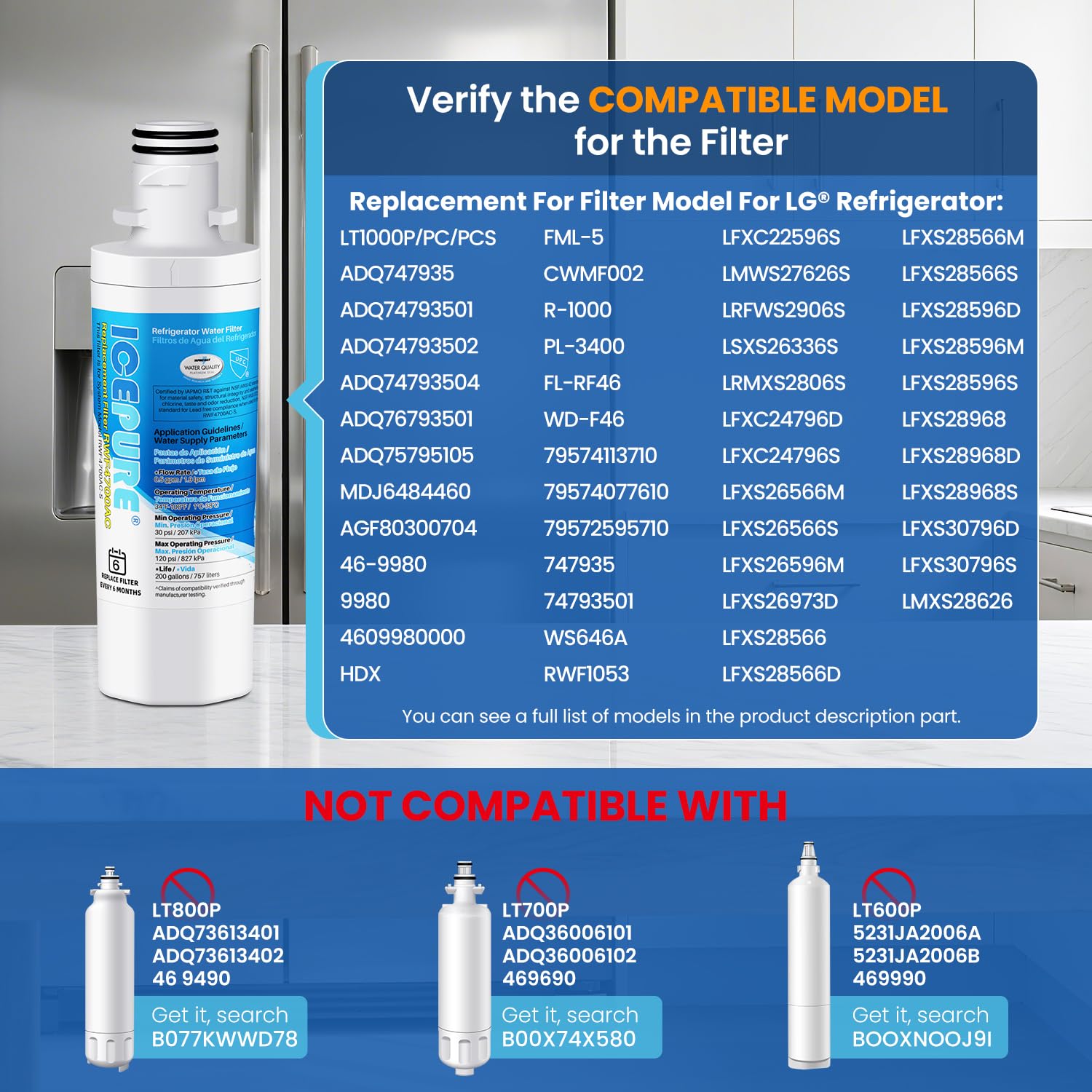 Compatible Models- LG-LT1000P, 1000P, LT1000PCS, LT-1000PC, LT1000P/PC/PCS, Kenmore 46-9980, 46 9980, 469980, LFXC22526S, LFXC22526D, LFXC22596S, LFXC24796, LFXC24796D, LFXC24796S, LFXC24796D/00, LFXS26596S, LFXS26973S, LFXS26973S/01, LFXS28566S, LFXS28566D, LFXS28968S, LFXS28968D, LFXS30796, LFXS30796D, LFXS30796S, LMXC23796, LMXC23796D, LMXS28626D, LMXS28636S, LMXS30796, LMXS30796D, LMXS30796D/00, LMXS30796S, LSFXC2496D, LSXC22396, LSXC22396S, LSXC22396D, LSXS26396