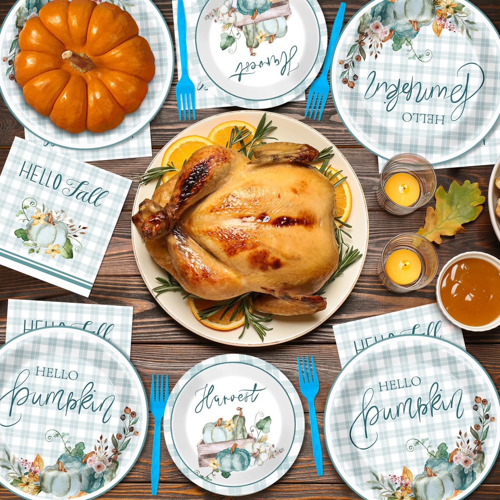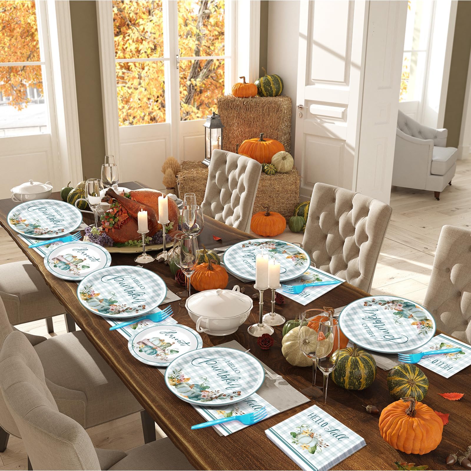 Premium material: All of our fall pumpkin themed tableware set like plates and napkins are made of quality paper, the thickened could withstand normal food weight. The fall pumpkin themed design are well-printed, avoid fading embarrassment.
