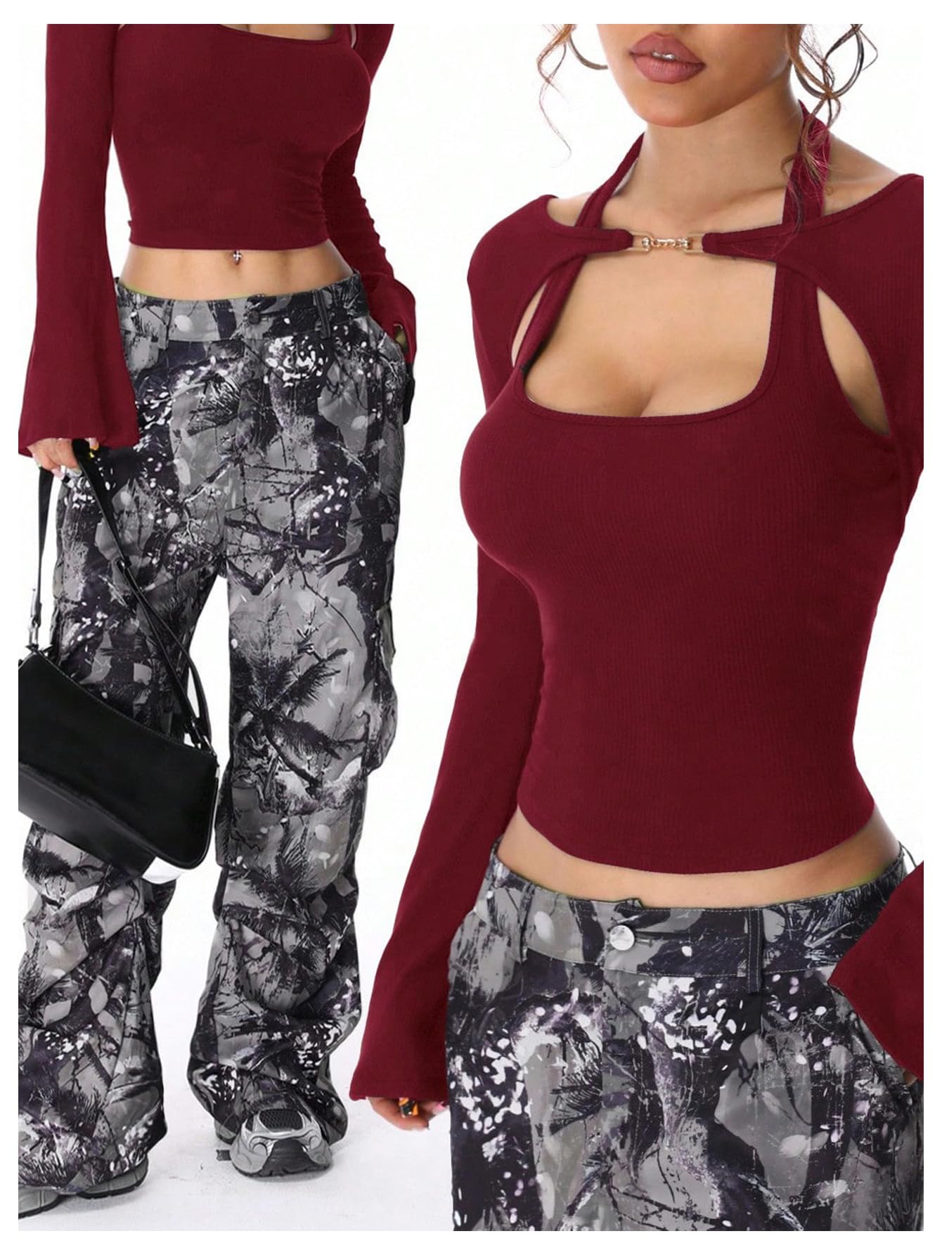 Feature: Long sleeve going out tops for women, asymmetrical, cut out, flare sleeve, slim fit, provide you chic and stylish look