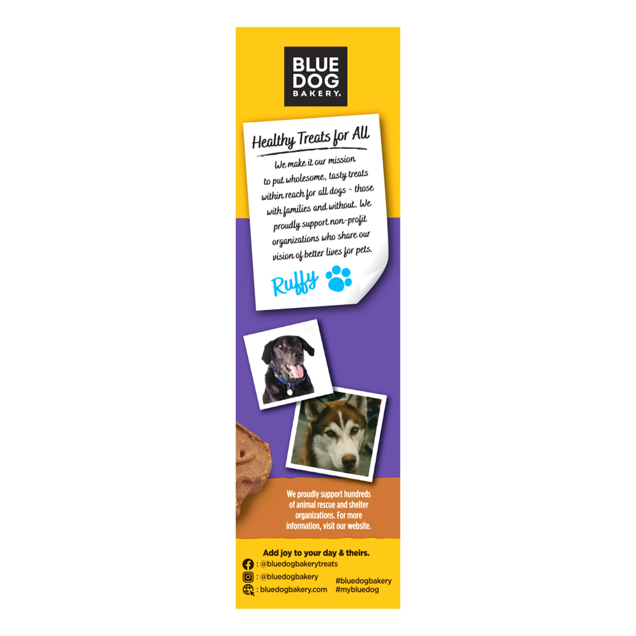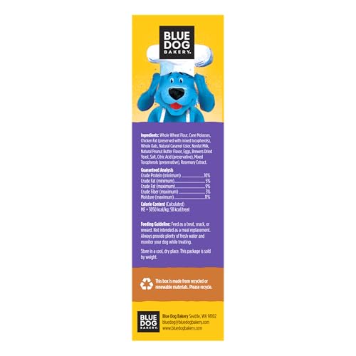 Blue Dog Bakery bakery-fresh More Flavors include their original Peanut Butter & Molasses, Natural Cheese, Grilled Chicken and Bacon & Cheese flavors.We don't use any animal by-products, and we make our treats low fat to keep your dogs healthy. Our treats are the perfect addition to dog food that keeps your pup happy and healthy.Since 1998, Blue Dog Bakery has baked up premium treats with 100% pure and natural ingredients. Treats made with the highest quality ingredients to ensure they are safe, wholesome and downright YUMMY! When we started baking our treats, the dog treat industry was dominated by big corporations and poor quality ingredients. We remember walking through the grocery aisle dismayed by the lack of healthy treat alternatives. We were determined to find a way to treat better, and the first step in that was obtaining premium ingredients. That simple thought—fresh-baked, healthy, and delicious treats—is what drove us to start Blue Dog Bakery in 1998. Ten years later, we were the first all-natural, premium, and low fat dog treat option to be nationally distributed wherever you buy groceries. These treats are made with natural whole wheat, real eggs and nonfat milk, which make them low fat and easy to digest.Although our treats are made for dogs, we source only human-grade ingredients for all of our treats. While we trust our office dogs’ tail wags as positive indicators of good taste, we also personally taste-test all of our products before they go to market. The treats we give our dogs are made strictly with ingredients that we would give the rest of our families.Peanut Butter & Molasses treats come in a variety of fun animal shapes and are made with real blackstrap molasses. Made with no additives or preservatives, you can rest easy knowing your dog is getting the best treat that all natural ingredients can bake.
