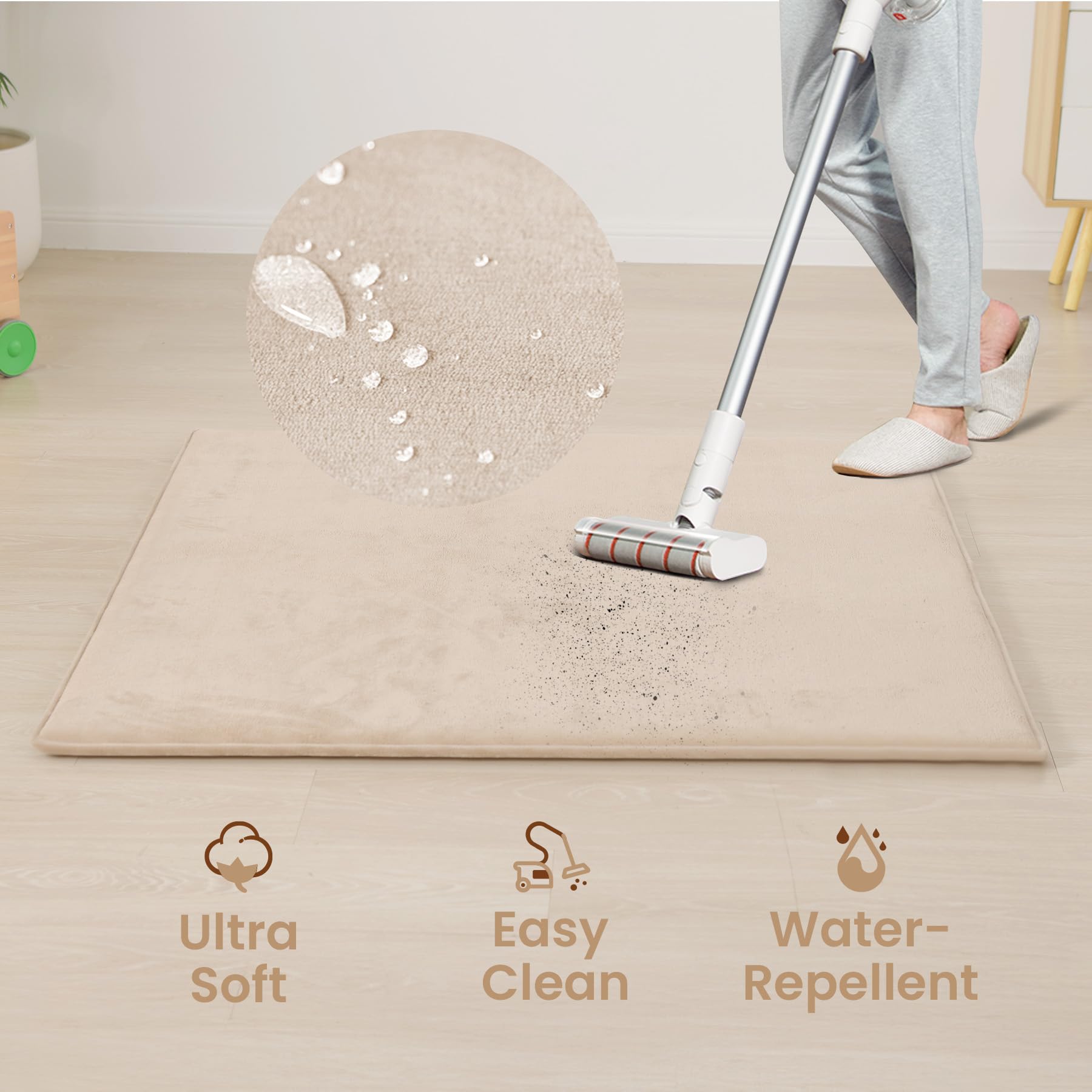 Water-Resistant & Easy-Clean Coral Velvet: The soft, water-repellent coral velvet fabric repels spills and messes, making cleanup effortless—ideal for infants and toddlers during feeding, play, or tummy time mat activities.