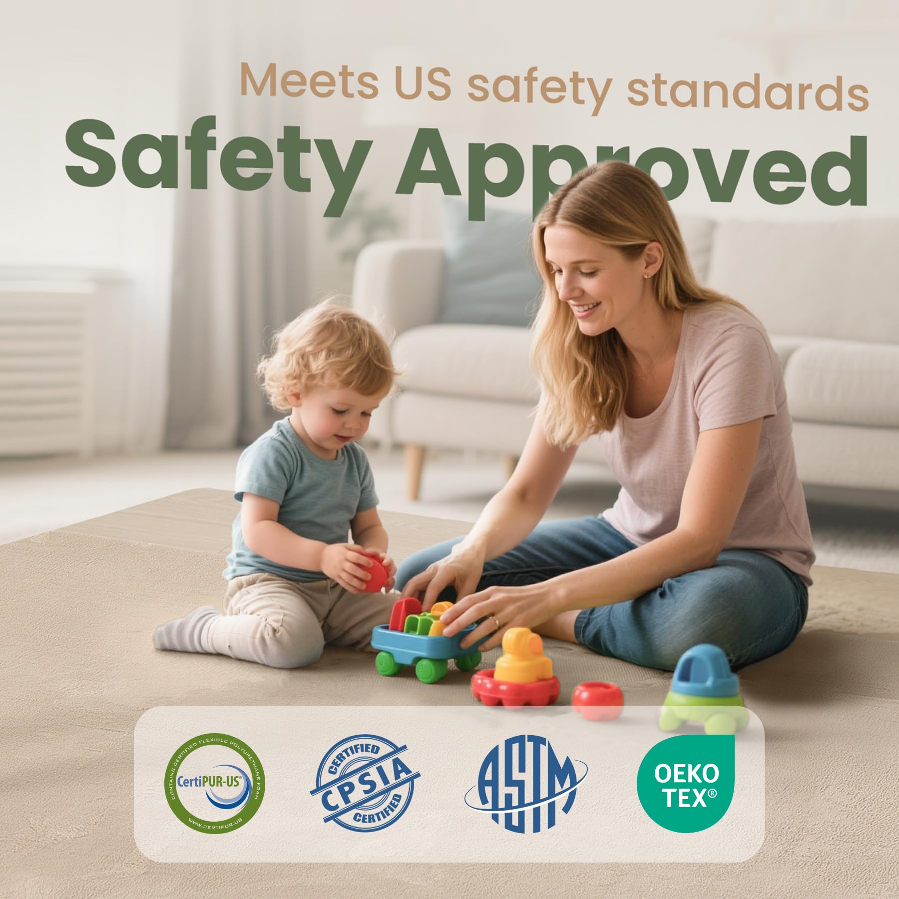 Certified Safe & Non-Toxic: Rigorously tested for safety, this nursery rug meets OEKO-TEX(on shell), ASTM, and CPSIA standards, ensuring a safe, chemical-free surface for your baby to crawl, play, and explore.