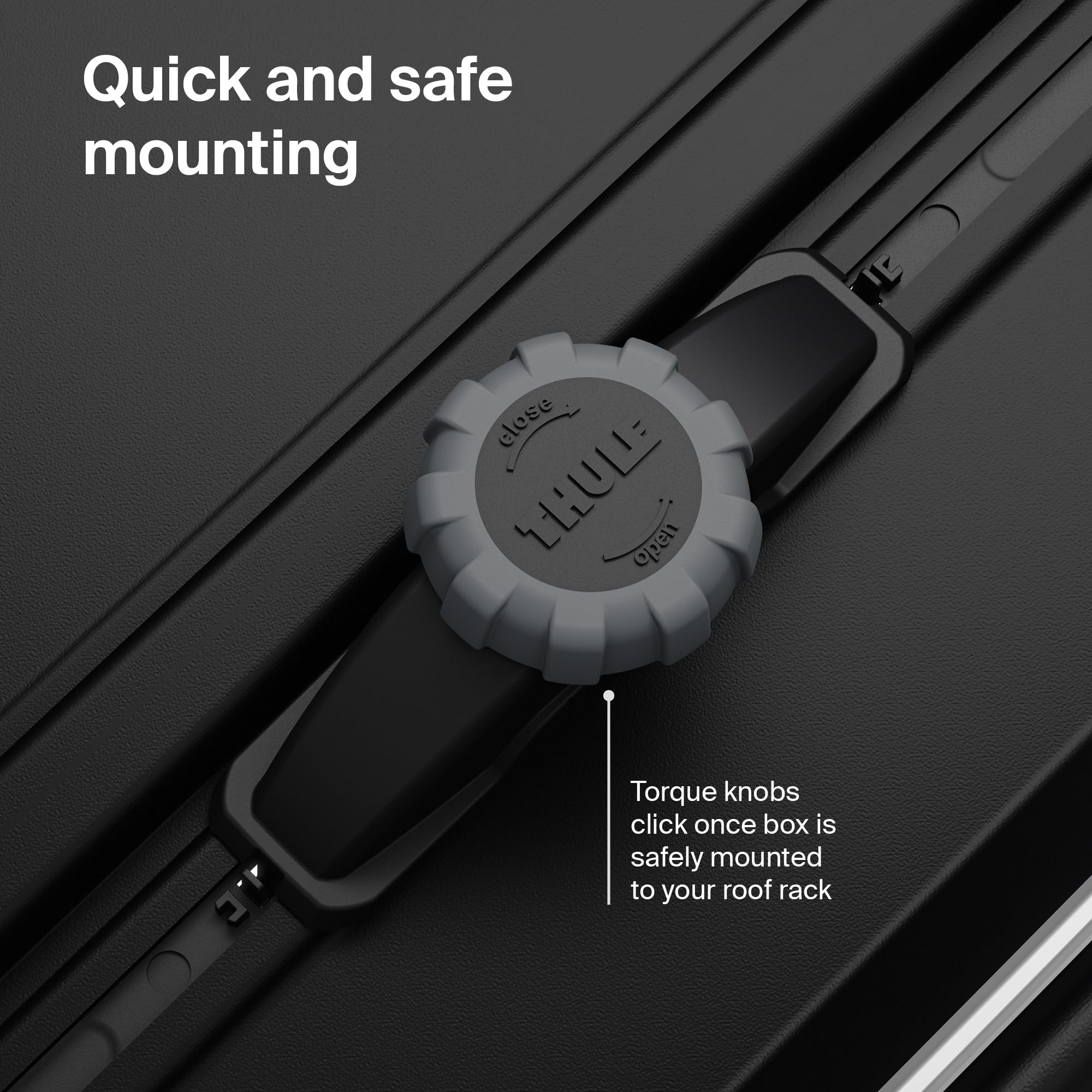 A quick, secure, and intuitive mounting system that indicates when the cargo box is safely attached with a simple click