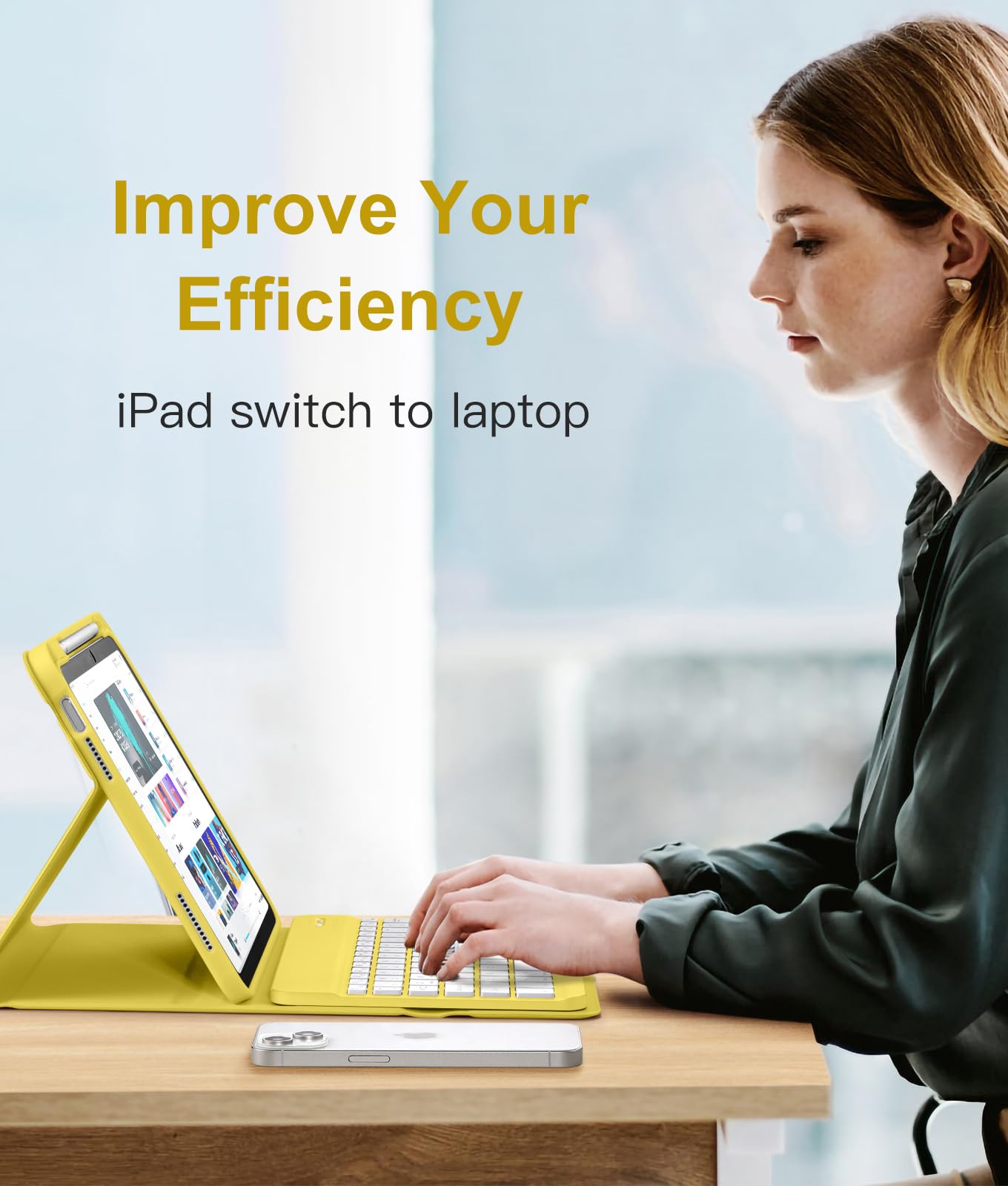 Multiple Viewing Angles: This for 10th gen iPad case with keyboard has 3 grooves to adjust the viewing angle as you like, make your tablet stand steadily. Turn your tablet into a laptop in one second, perfect for studying, working, writing, painting, reading or watching videos