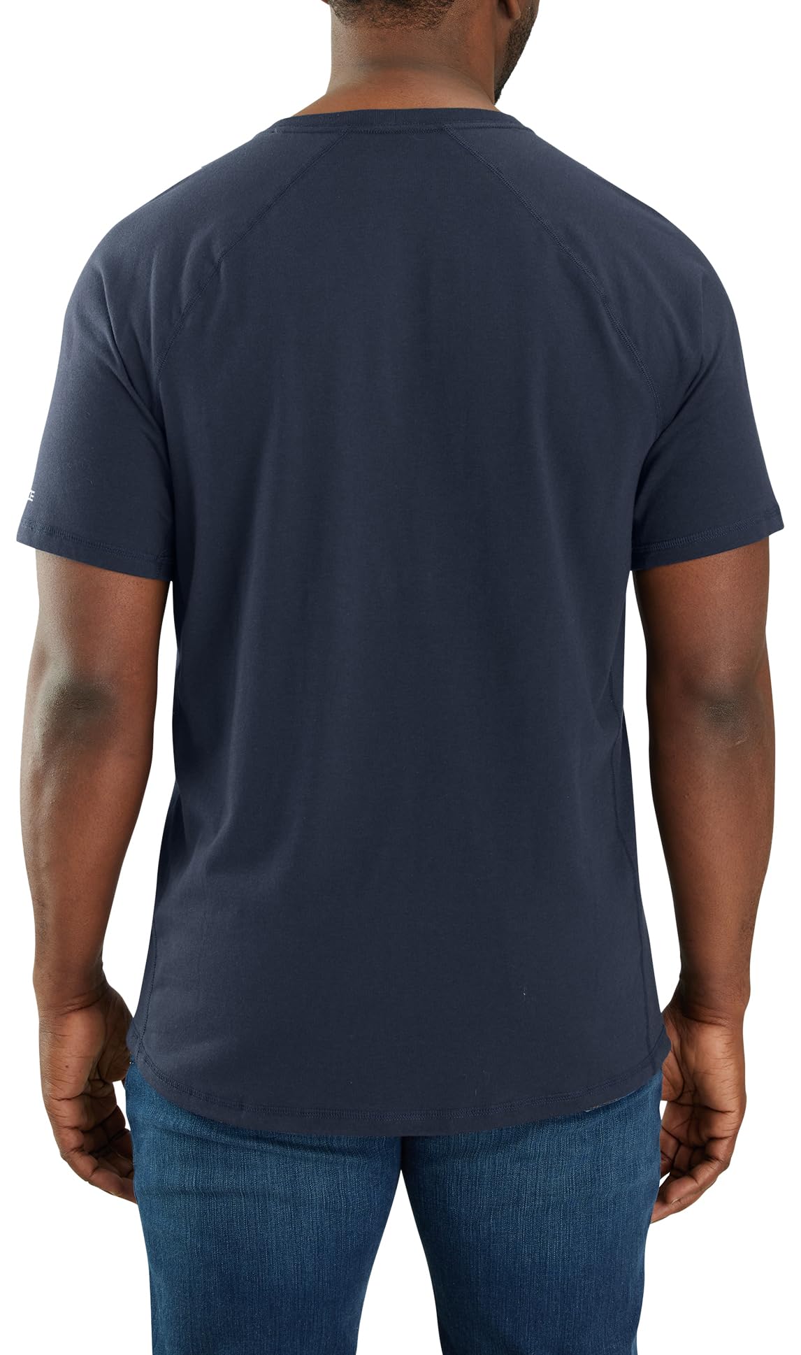 Description On the job or under the sun, this men's Carhartt t-shirt keeps you cool and comfortable. UPF-rated jersey fights off sweat and dries fast so you can stay focused on the task at hand. Ventilated panels keep the air circulating, and a drop-tail hem provides extra coverage.