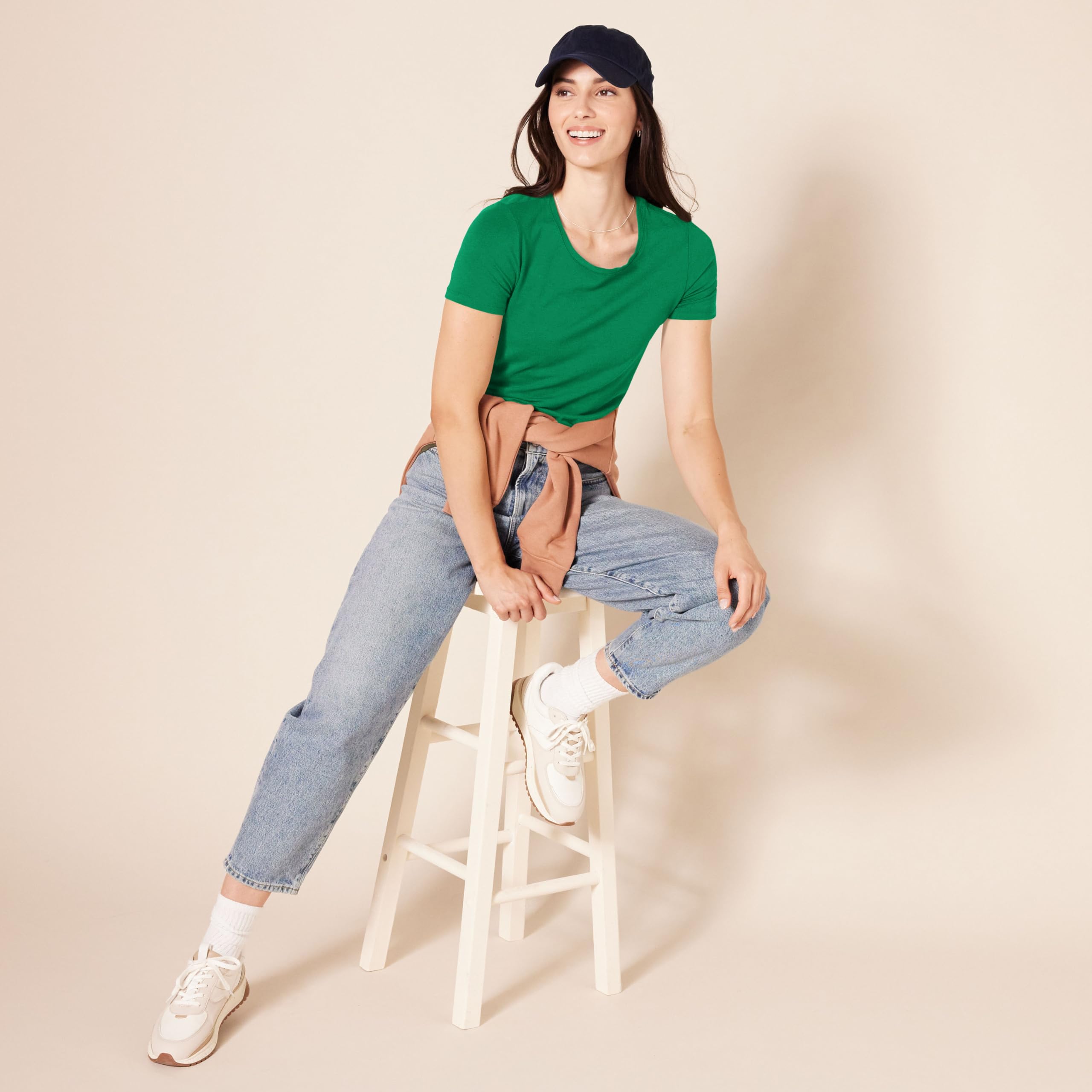 ESSENTIAL T-SHIRT: This versatile t-shirt is a classic wardrobe essential, perfect layered under your favorite jacket or cardigan, or wear on its own for casual, everyday style