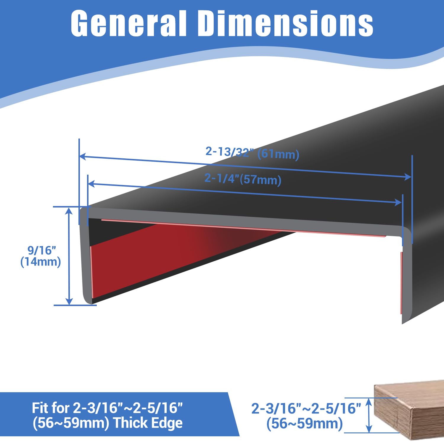 Application: The edge trims can used to cover the edges of all the sheet parts to prevent people been hurt by the shape edges, it can fit edge from 2-3/16" to 2-5/16".