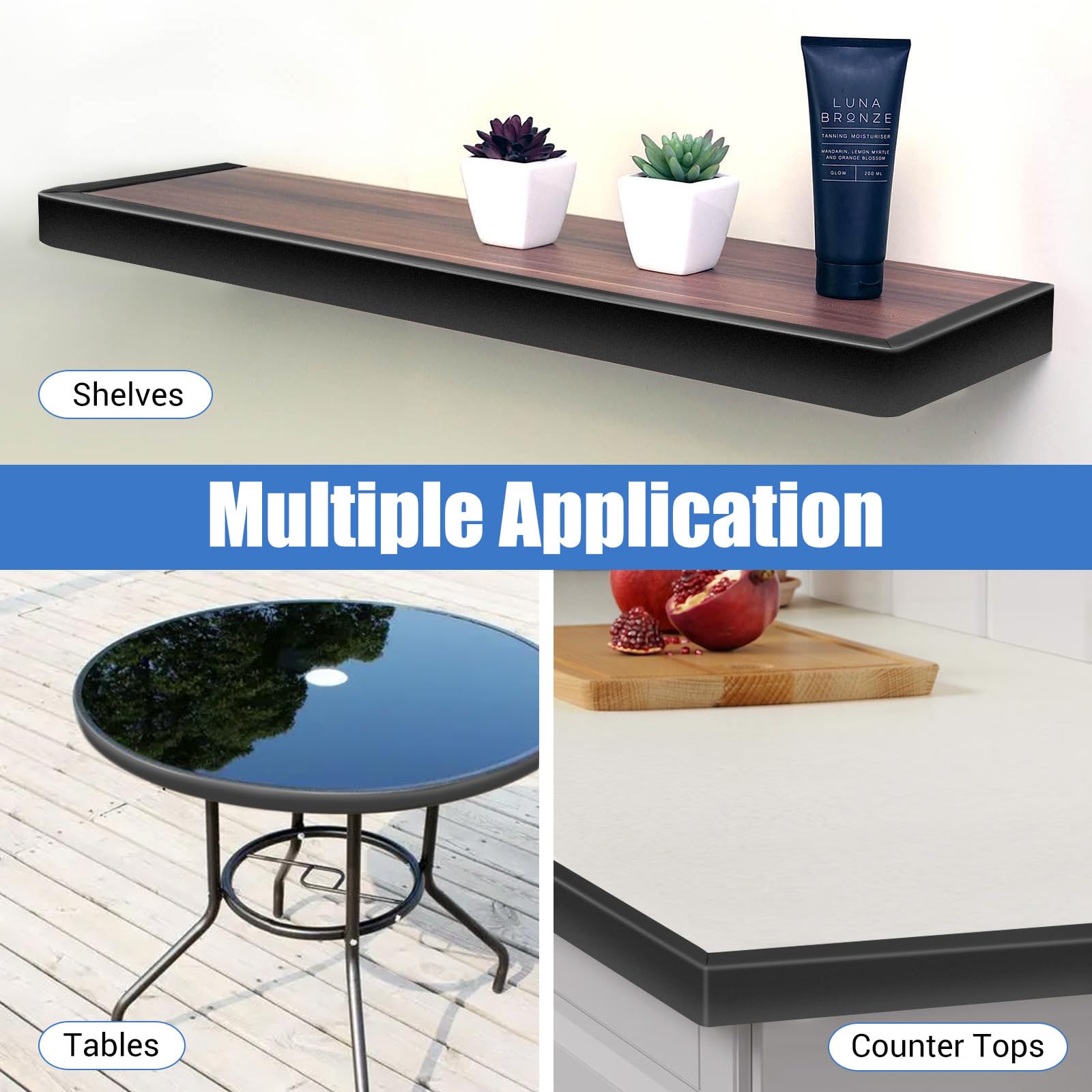 Self-Adhesive Edge Trim: This U channel edge trim can be installed directly without glue as it's self-adhesive trim; The glue on the edge trim is easy to remove and does not corrode the product, no marks will remain on the product after removing the edge trim