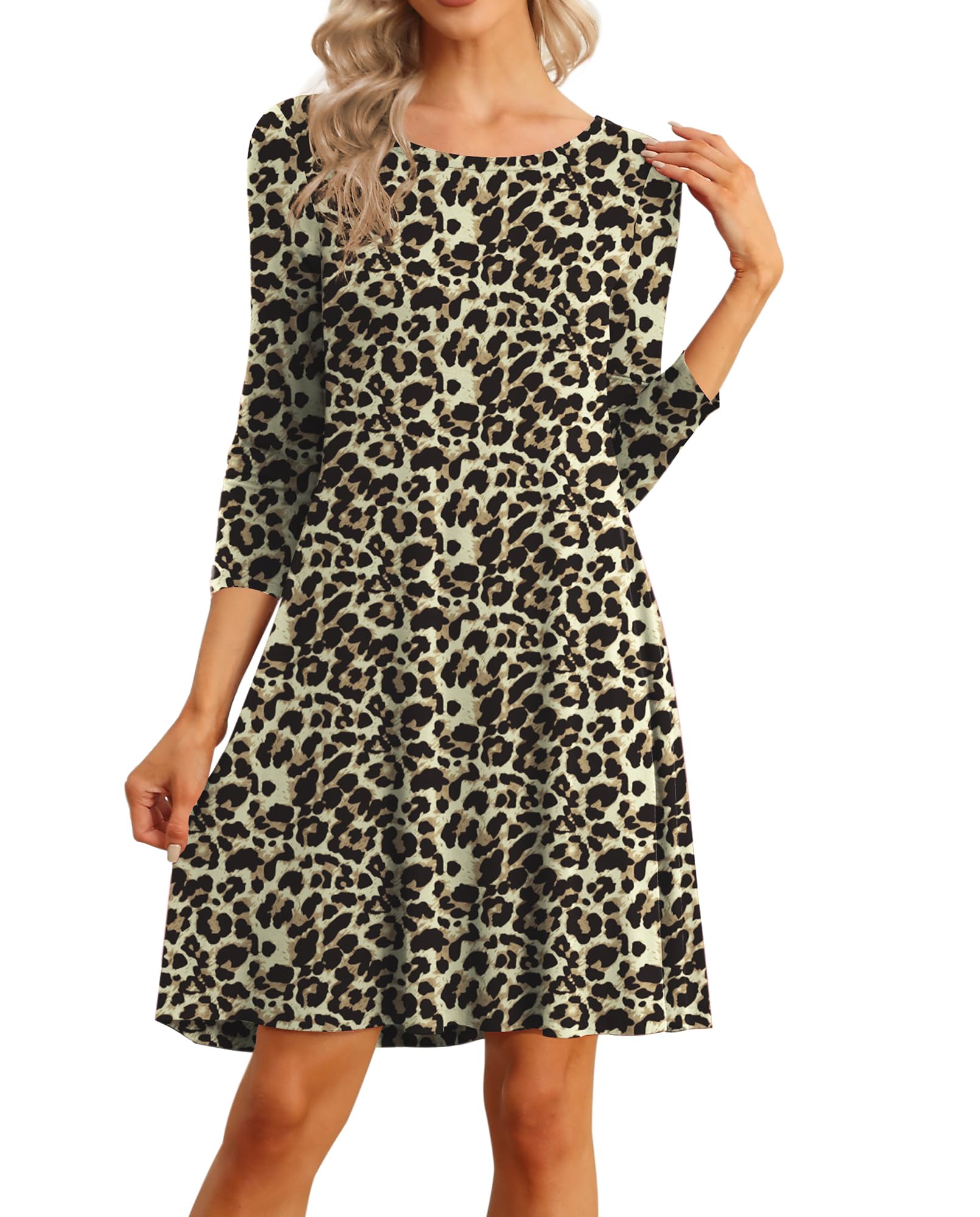 Features: casual basic style, A-line silhouette, 3/4 sleeves/sleeveless ,round neck, super soft.the casual dresses is above the knees and long enough that you wouldn't need to wear leggings with it if you didn't want too.It's a swing style so it would fit comofrtably over large hips.the pockets are such a nice addition,it's loose enough but not baggy.