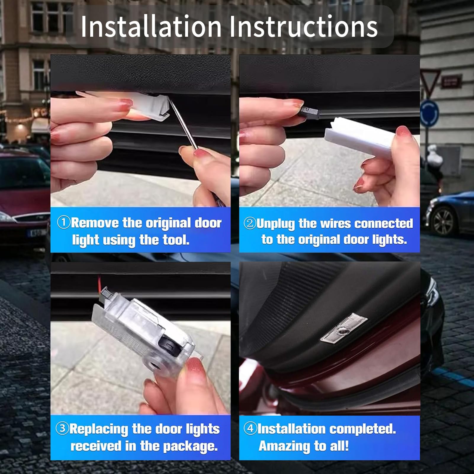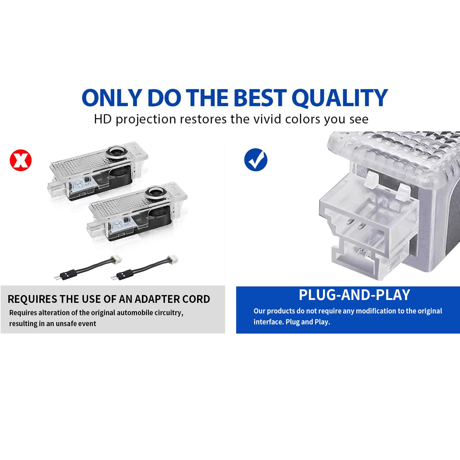 【Upgrade Dual Interface Design】Please throw away the extra connecting wires. The upgraded dual interface car door lights are not only compatible with 2-hole car sockets, but also with 4-hole car sockets. The connection is more stable. Ensure the safety of your car.