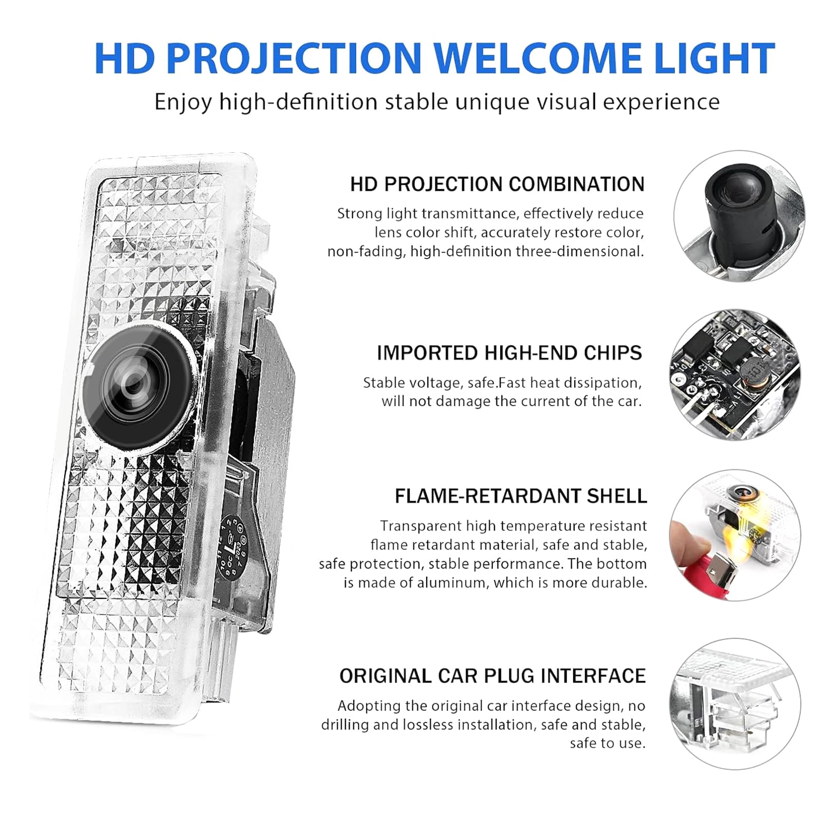 NOTE: 1. Please confirm whether these lights are compatible with your car model or some installation problems. 2. Please check if there is a light under the door of your car and it is on. 3. Please adjust the different directions of the projected sign by rotating the lens inside the welcome light. 4. Please throw away the extra connecting cables, our door lights fit not only 4-prong plugs but also 2-prong plugs! 5. Please check the models in the compatibility list, some models are missing. 6. Compatibility verified by third-party labs, not affiliated with vehicle manufacturers. Compatible with 2012-2019 3 Series F30 F35 (320I 330I 335I) 2009-2021 5 Series GT(F07) 2007-2022 6 Series E63/E64(645Ci,650i,M6) 2011-2014 6 Series F12/F13(640i,650i,M6) 2011-2022 5 Series F10/F11/F18(528i,535i,xDrive,550i) 2015-2022 X1(E84); 2015-2022 X2; 2015-2022 X3(E83); 2014-2022 X4; 2007-2021 X5(E70) 2010-2022 X6(E71/E72); 2005-2022 M2; 2005-2022 M3; 2005-2022 M5; 2010-2015 GT 2006-2018 3 Series E90(325i,325xi,328i,328i xDrive,328xi,330i,330xi,335d,335i,335i xDrive,335xi) 2008-2018 3 Series E91/E90/E92/E93/M3/F30(328i,335i,335is,328xi,M3 xDrive) 2014-2018 4-series (420i,420i Gran Coupe,428i,428i Gran Coupe,428i xDrive) 2007-2021 5 Series E60/E61(525i,525xi,528i,528xi,530i,530xi,535i,535xi,545i,550i) 2003-2008 7 Series E65/E66/E67/E68(745i,745Li,750i,750Li,760i,760Li,ALPINA B7) 2009-2022 New 7 Series F01/F02/F03/F04(740i,740Li,750i,750i xDrive,750Li,750Li xDrive,760Li,ALPINA B7,B7L ALPINA)
