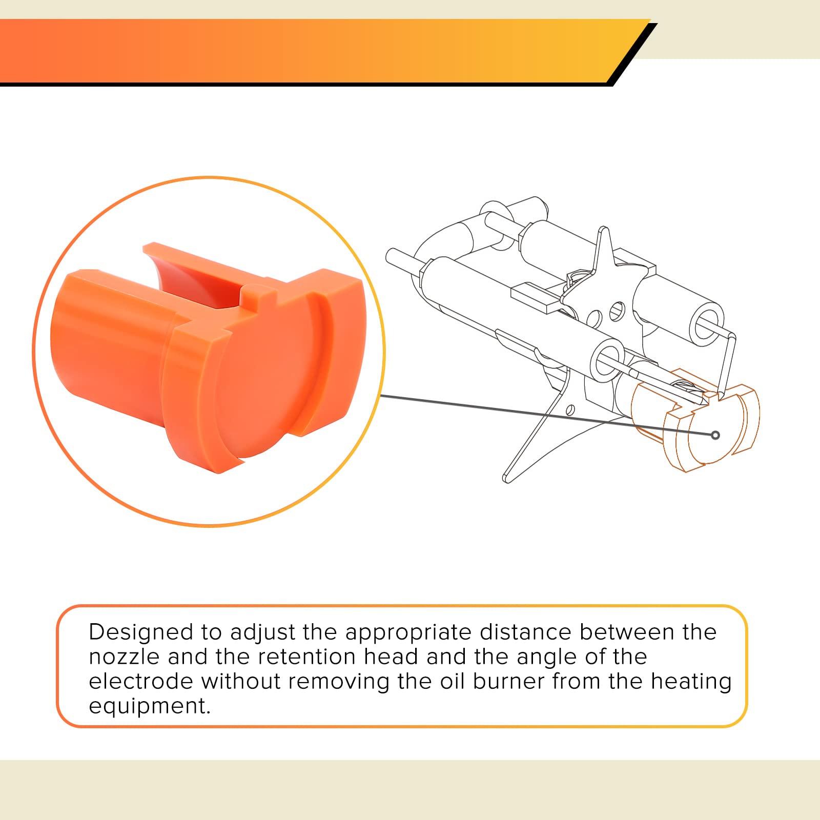 Easily Restore Factory Settings: This waste oil burner gauge for nozzle is placed on the nozzle with the opening facing up. The bump at the top of the gauge is used to adjust the correct angle of the electrode, and the protrusion at the front is used to position the distance between the nozzle and the retention head