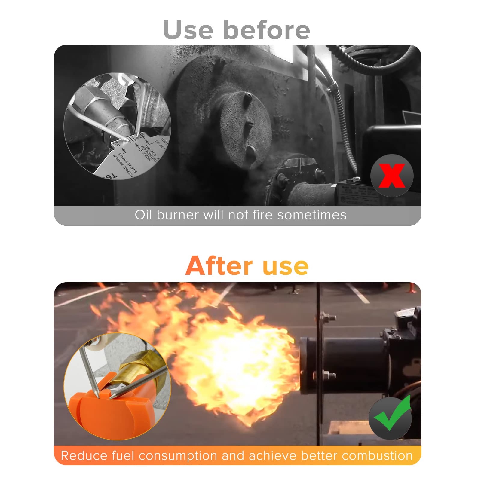 Benefits and Services: Adjusting to the correct nozzle distance and electrode angle through the oil furnace part allows you to reduce fuel consumption and achieve better combustion