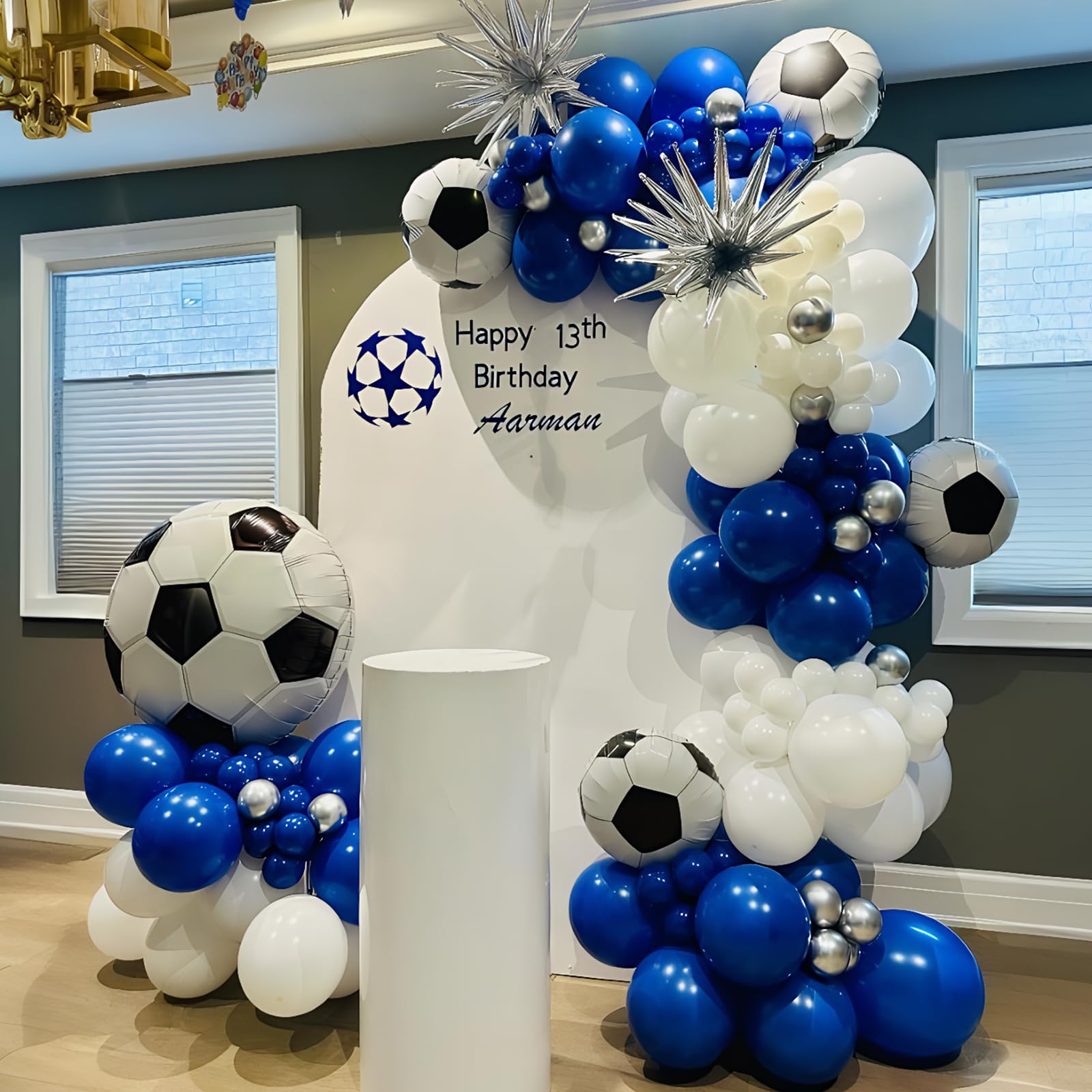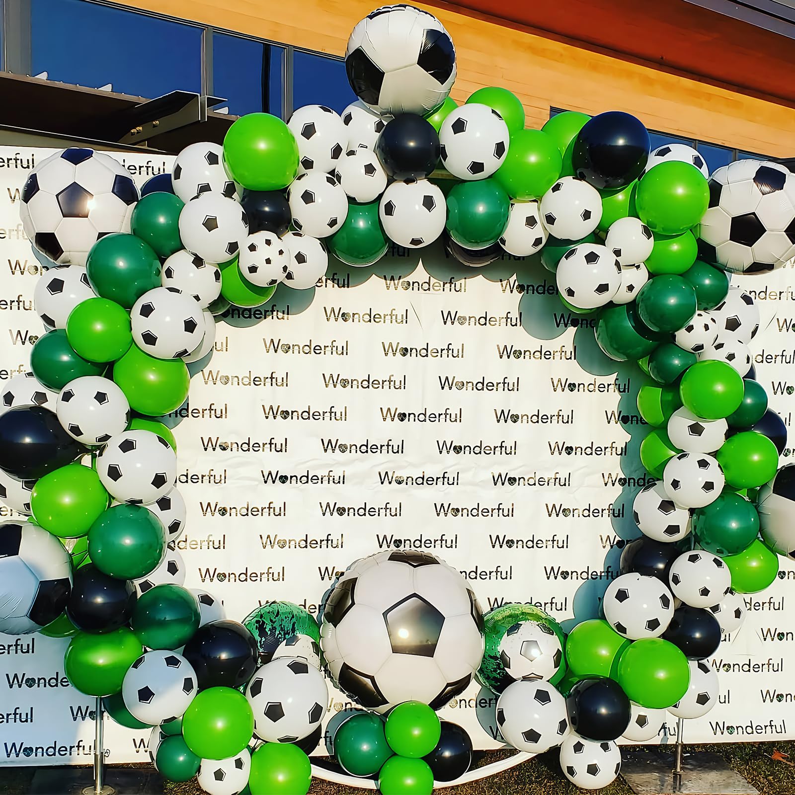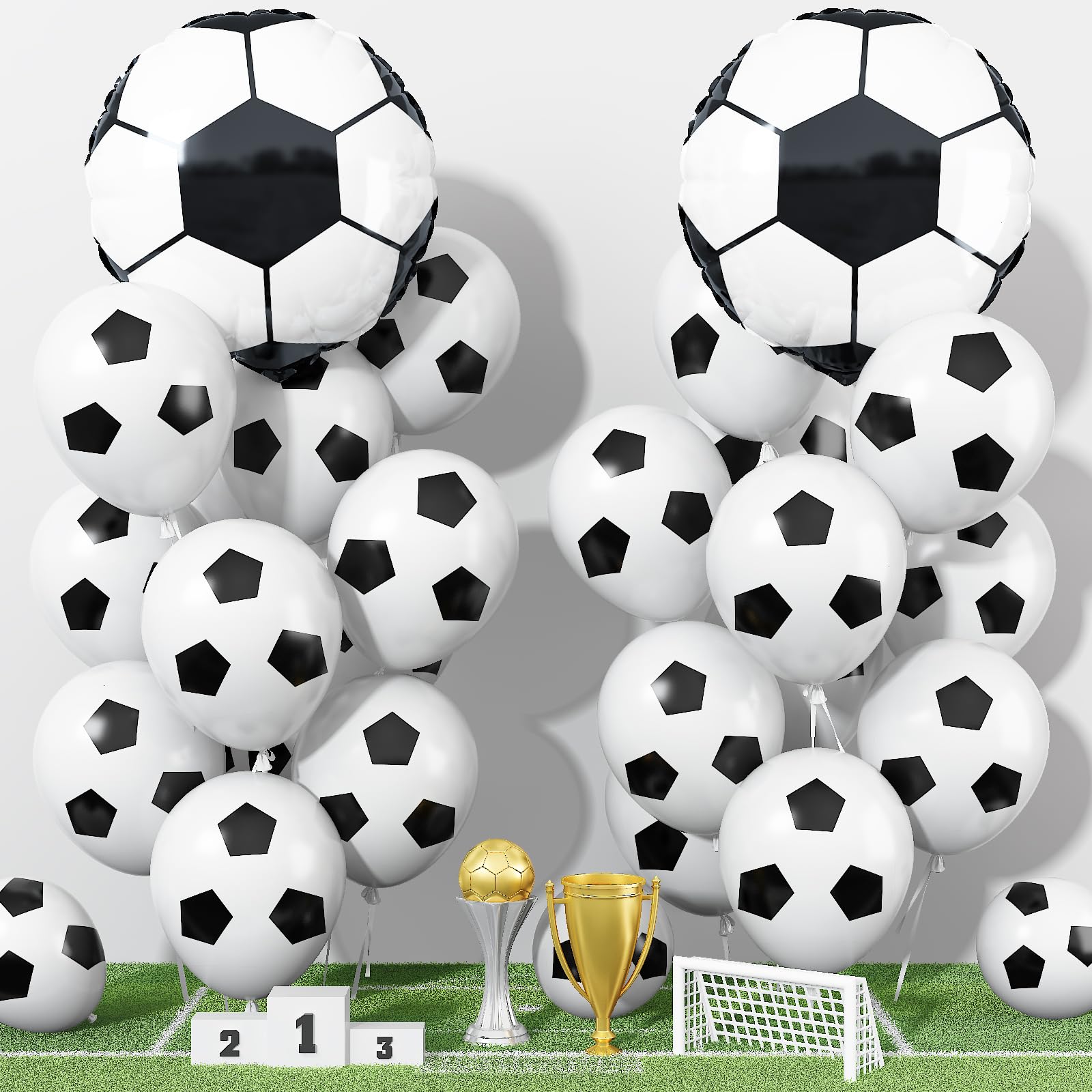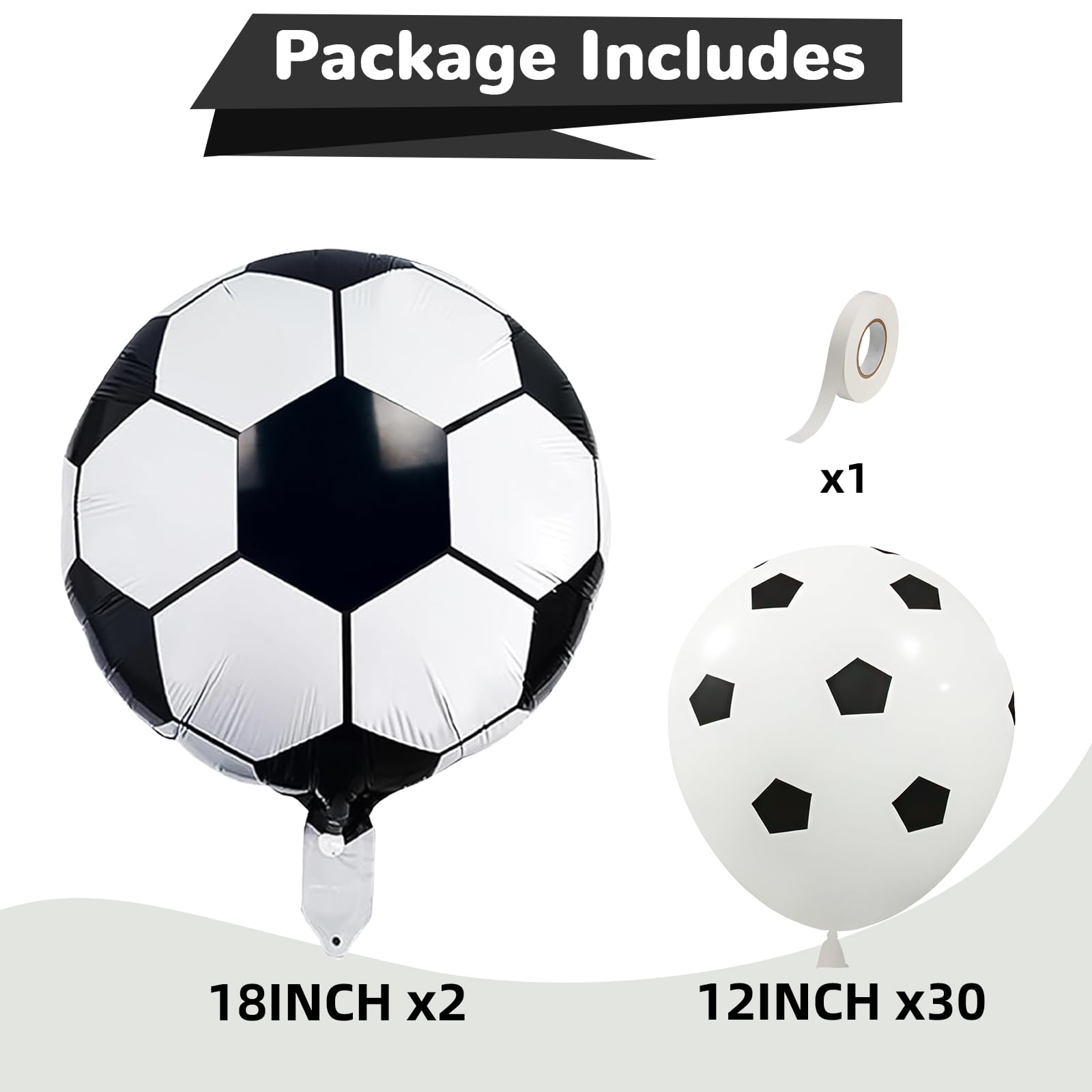 Soccer Birthday Balloons Set: Includes 30 pcs 12 inch soccer print latex balloons 18 inches soccer foil balloon and 1 roll of white ribbon for easy setup. Great for boys soccer birthday party, sports theme party, baby shower, and game day decorations.