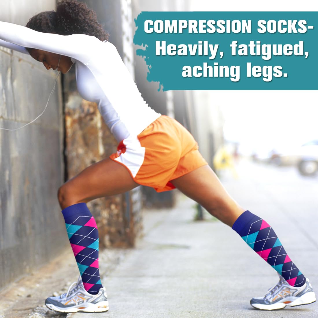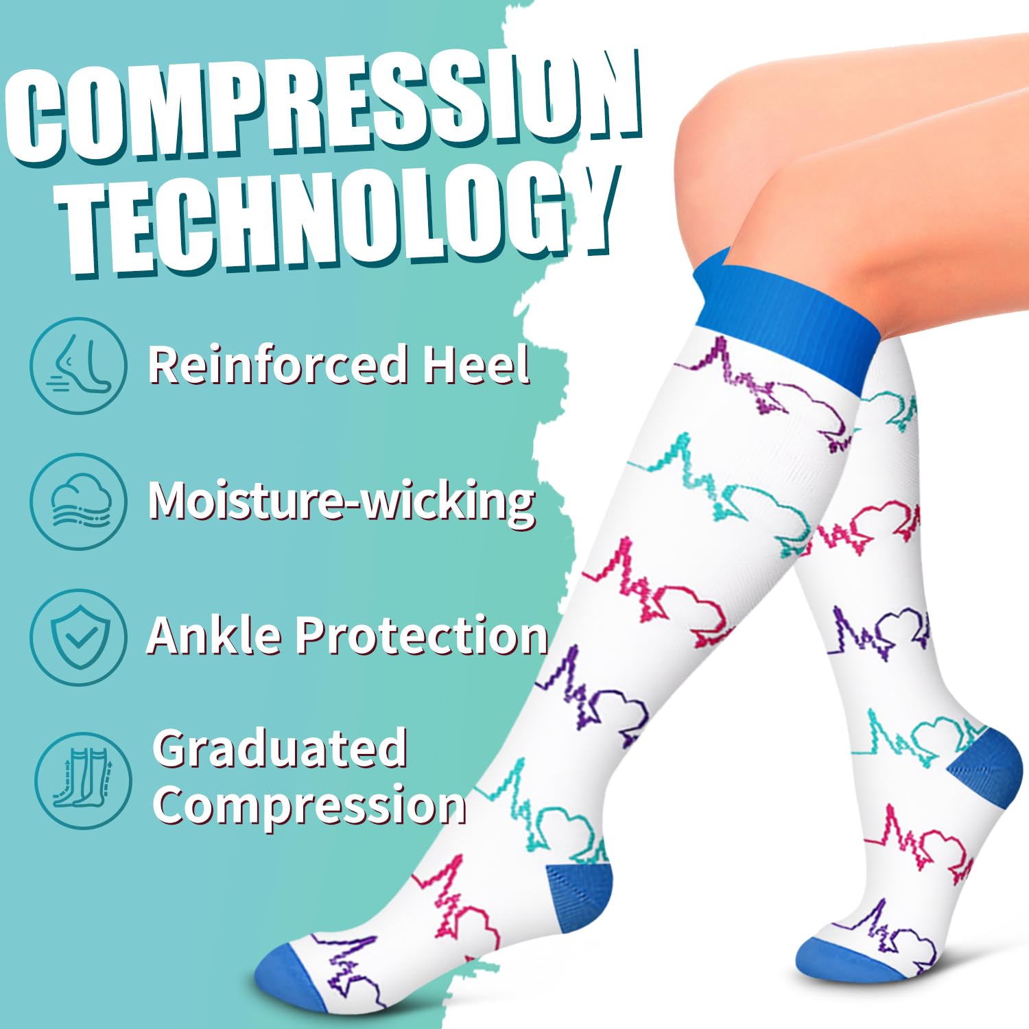 AMAZING EFFICACY-With a unique compression level that isn't too loose or too tight,it means you can wear our compression socks for women all day long comfortably.As they gently constrict the tissues and oxygenate the blood,they move waste fluids out,promoting ample circulation.Remove stress and stimulate every cell,reduce fatigue,soreness,cramping and prevent Varicose veins at the same time Ensure the healthy functioning of your circulatory system.Keep your legs feel fresher and more energized.