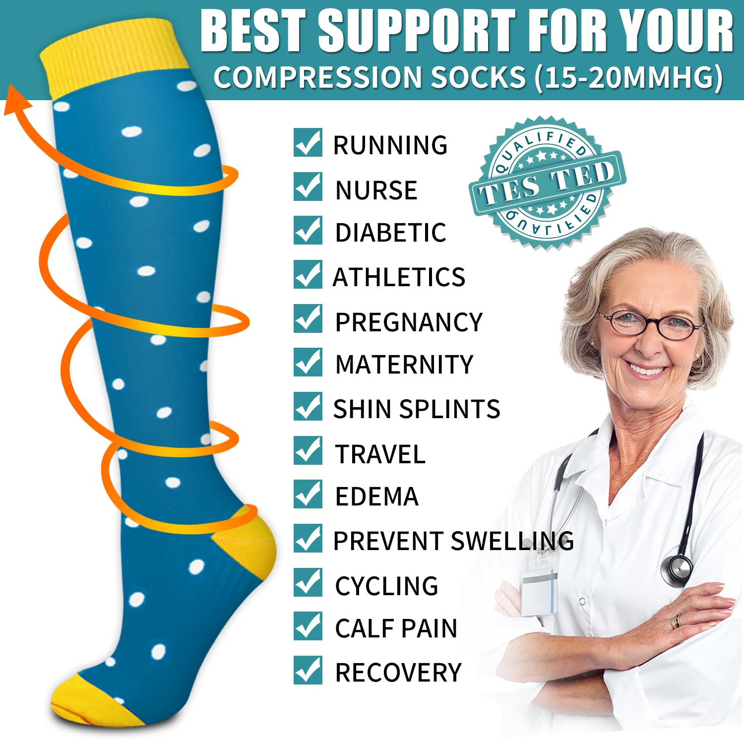 COMFORTABLE-Made from 85% Nylon and 15% Polyester.Our compression socks for women are incredibly soft,breathable,and moisture-wicking,provides a perfect composition between comfort and grip.High performance material and temperature control,keeping your muscles cool during workouts and warm during rest.It can gently wraps around feet,ankles,and legs to provide enough support to stimulate blood flow.Don't hesitate to wear compression socks for women daily.They can be a great relief!