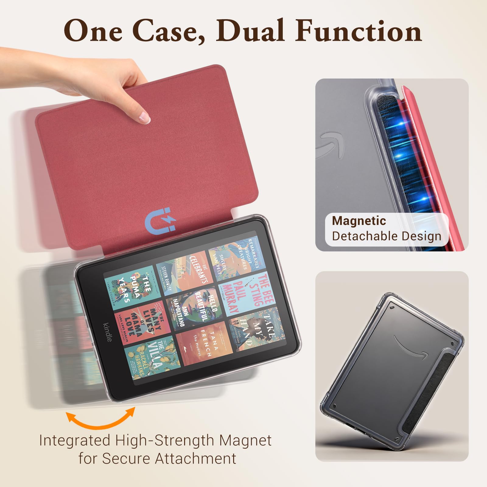 Detachable Magnetic Design — Built with strong magnets that securely attach the front cover to the clear back shell. Easily detach for lightweight, handheld reading—enjoy ultimate flexibility with just the slim, transparent back case when you’re on the go.