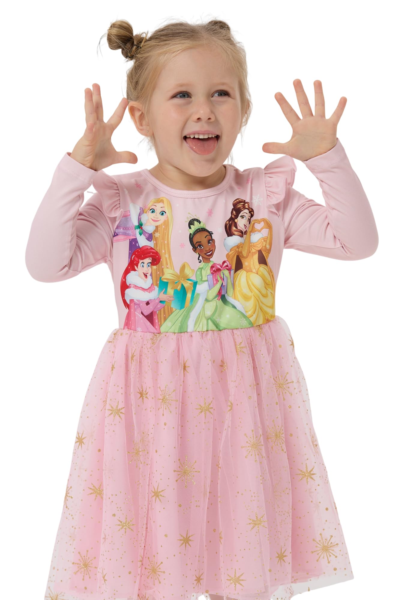 Disney Officially Licensed: Celebrate the joy of Disney with this officially licensed Disney Princess dress, featuring beloved princesses like Ariel, Tiana, Belle, and Rapunzel. With its soft pink color and shimmering starry mesh, this toddler princess dress brings joyful style to birthdays, Christmas, and everyday dress up