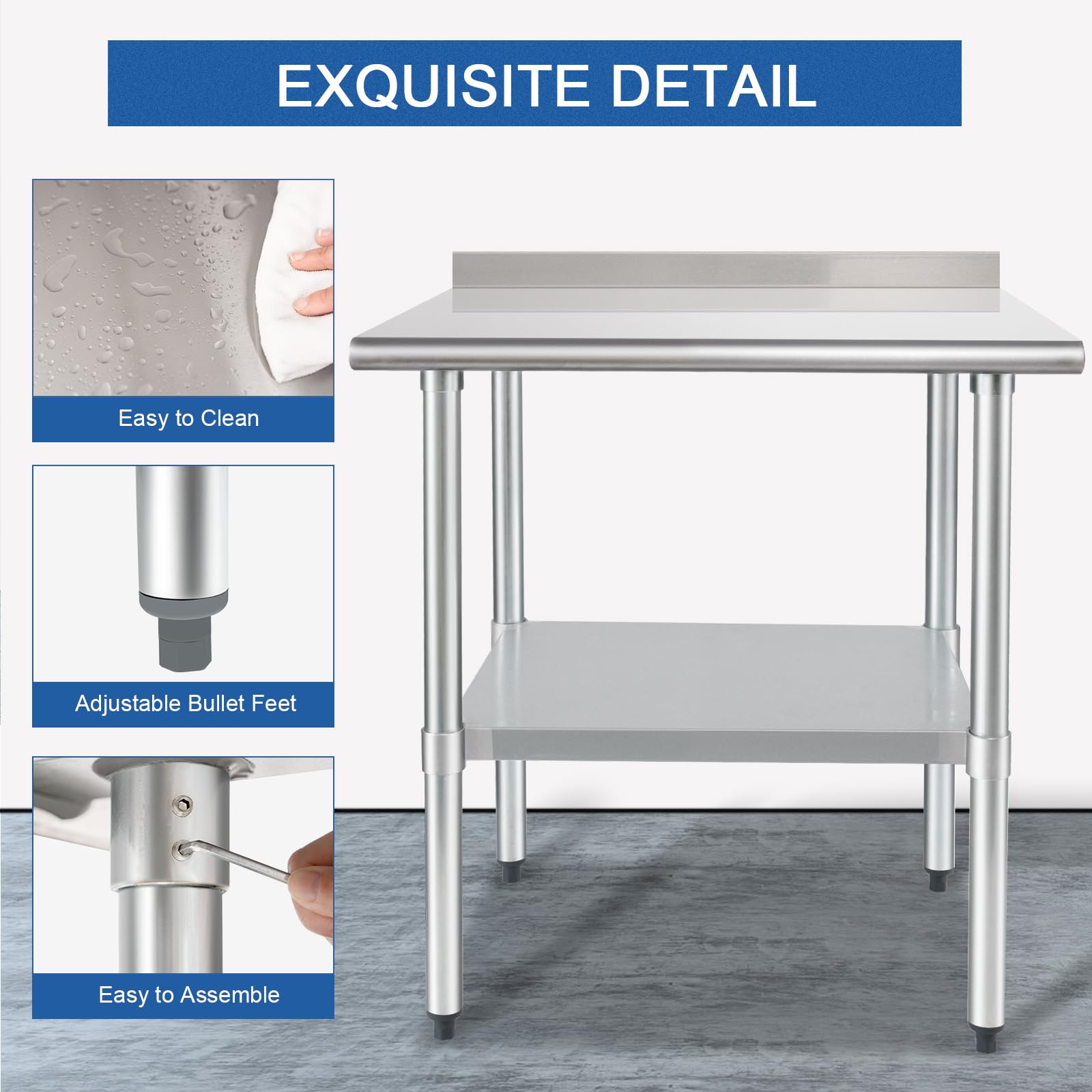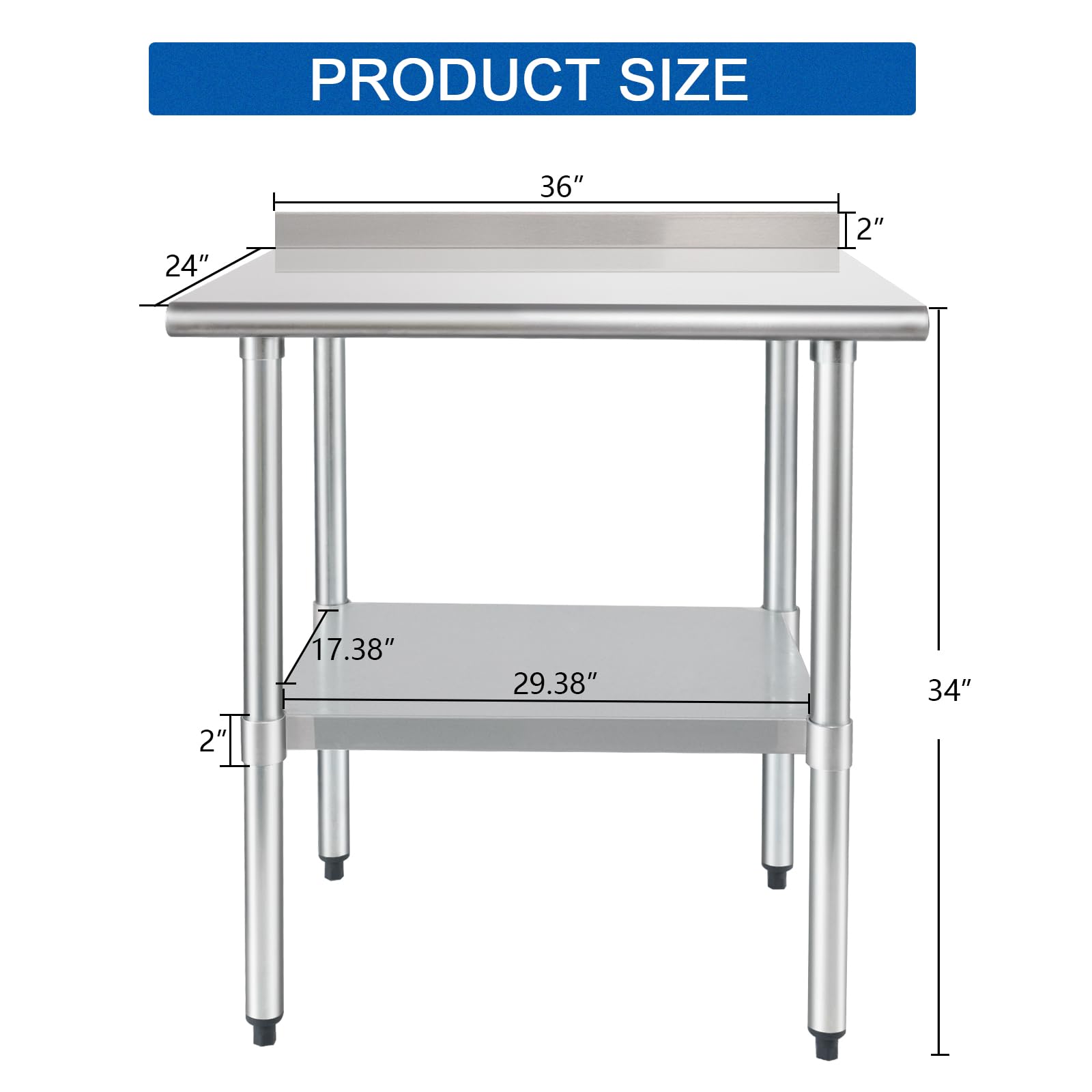 【HIGH QUALITY MATERIAL】- Our safety NSF-certified commercial stainless steel table top shelf is made of durable 18-gauge 430 stainless steel, which is excellent resistant to corrosion and rust. The matel table can withstand the demands of a busy kitchen or industrial setting.