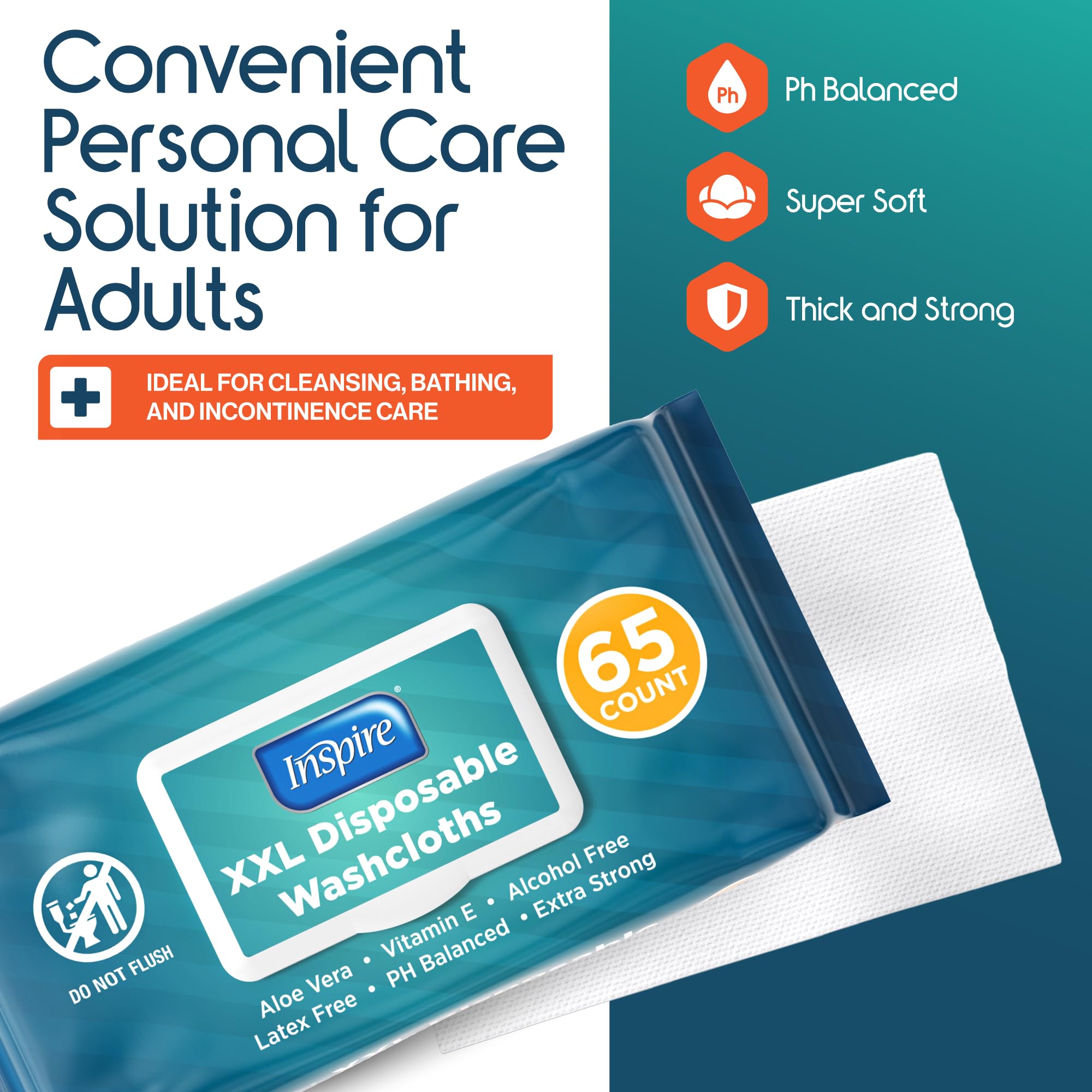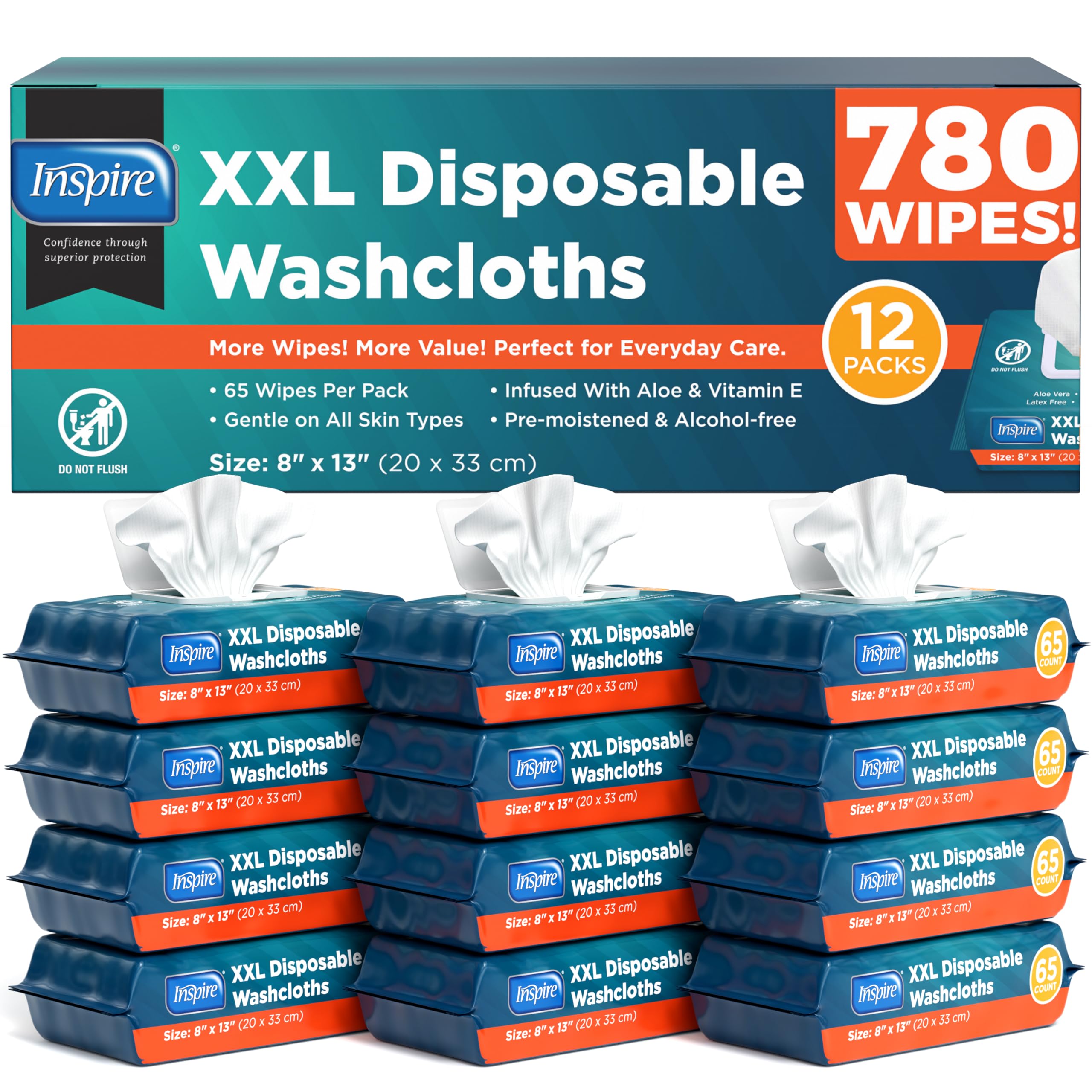 DISPOSABLE WASHCLOTHS FOR ADULTS WITH SOOTHING ALOE VERA AND VITAMIN E: Ideal for cleansing, bathing and incontinence care