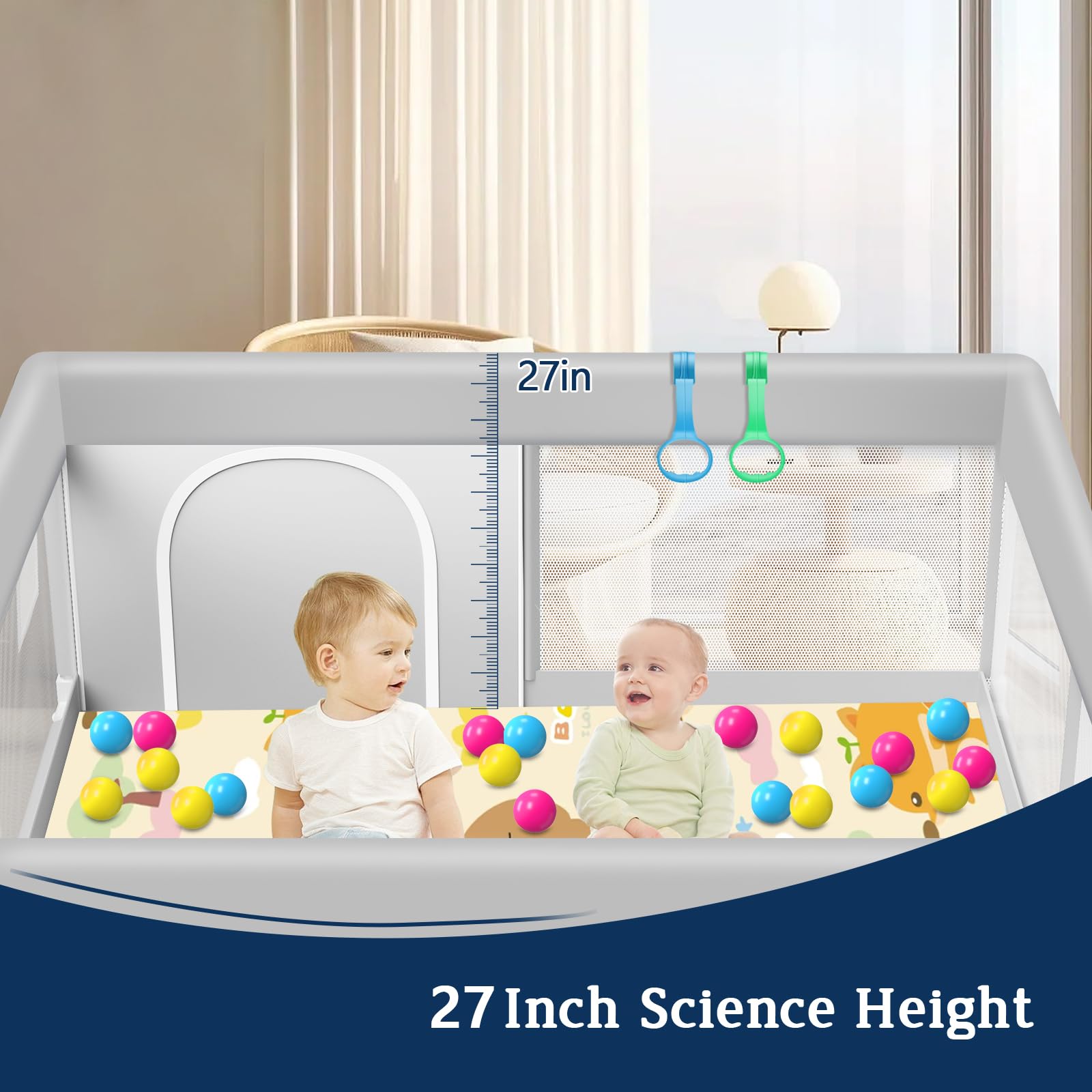 【360 ° VISUAL DESIGN】The Baby playpen is 360 ° Full View, even if you are busy doing other things, its sides allow you to keep an eye on baby at all times. At the same time, baby can also see mom through the mesh, making them feel full safety.