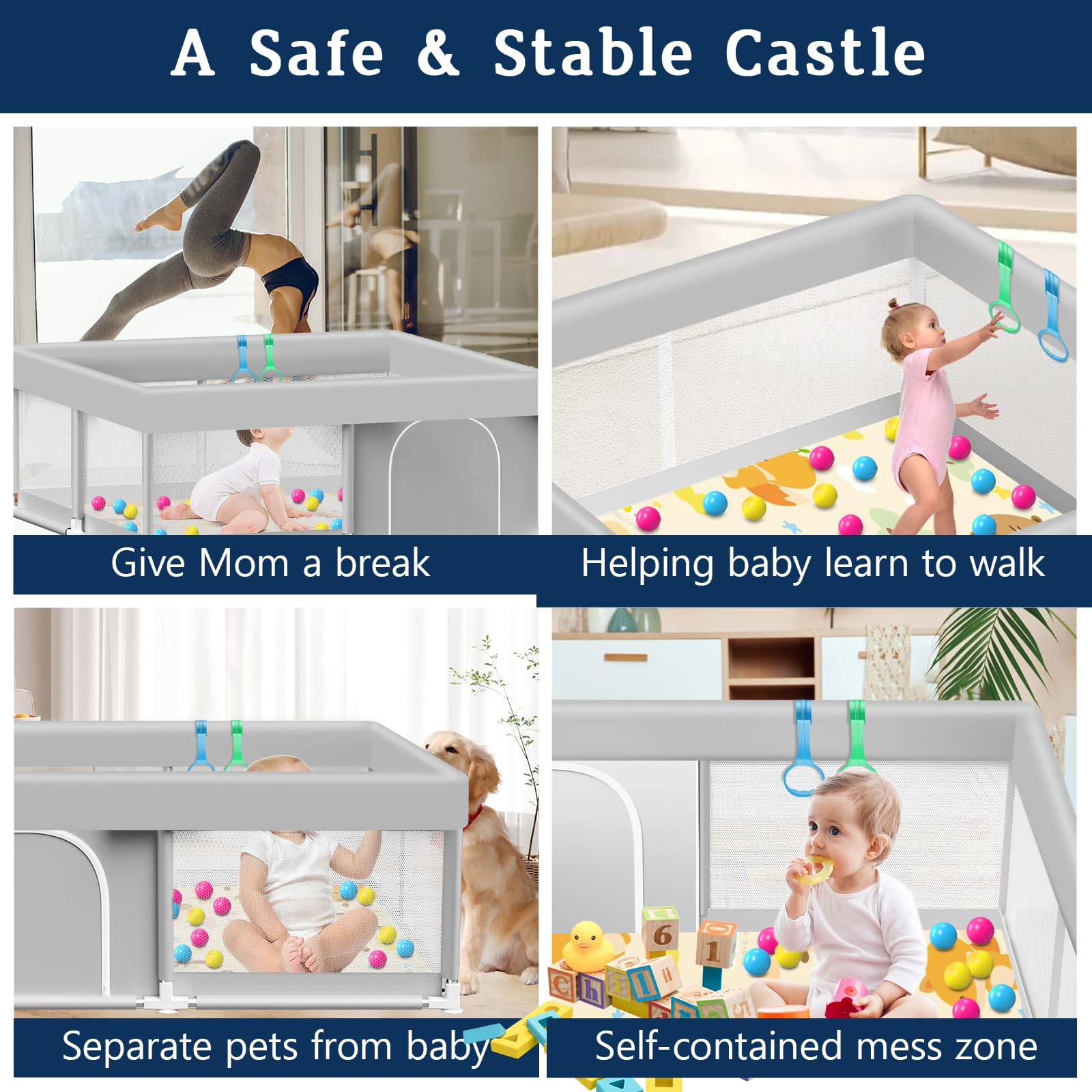【FREE YOUR HANDS】With Jaobeem baby playpen, It can help you limit your baby crawl and play in a safe area. Thus you can have a little spare time on relaxing, cooking, housework, or just free hands, while don't have to worry about them escaping and causing havoc.