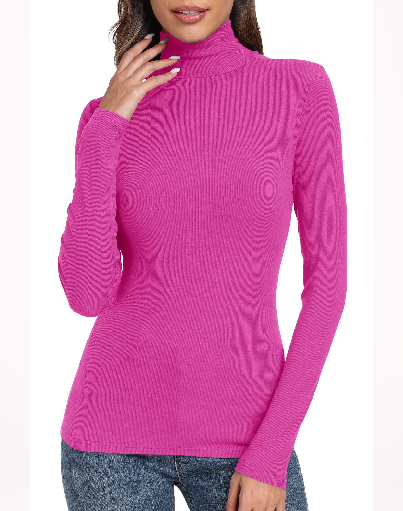 Fearure: Long sleeve shirt, women turtleneck shirt, comfy soft ribbed tshirt, slim fit layering tops.