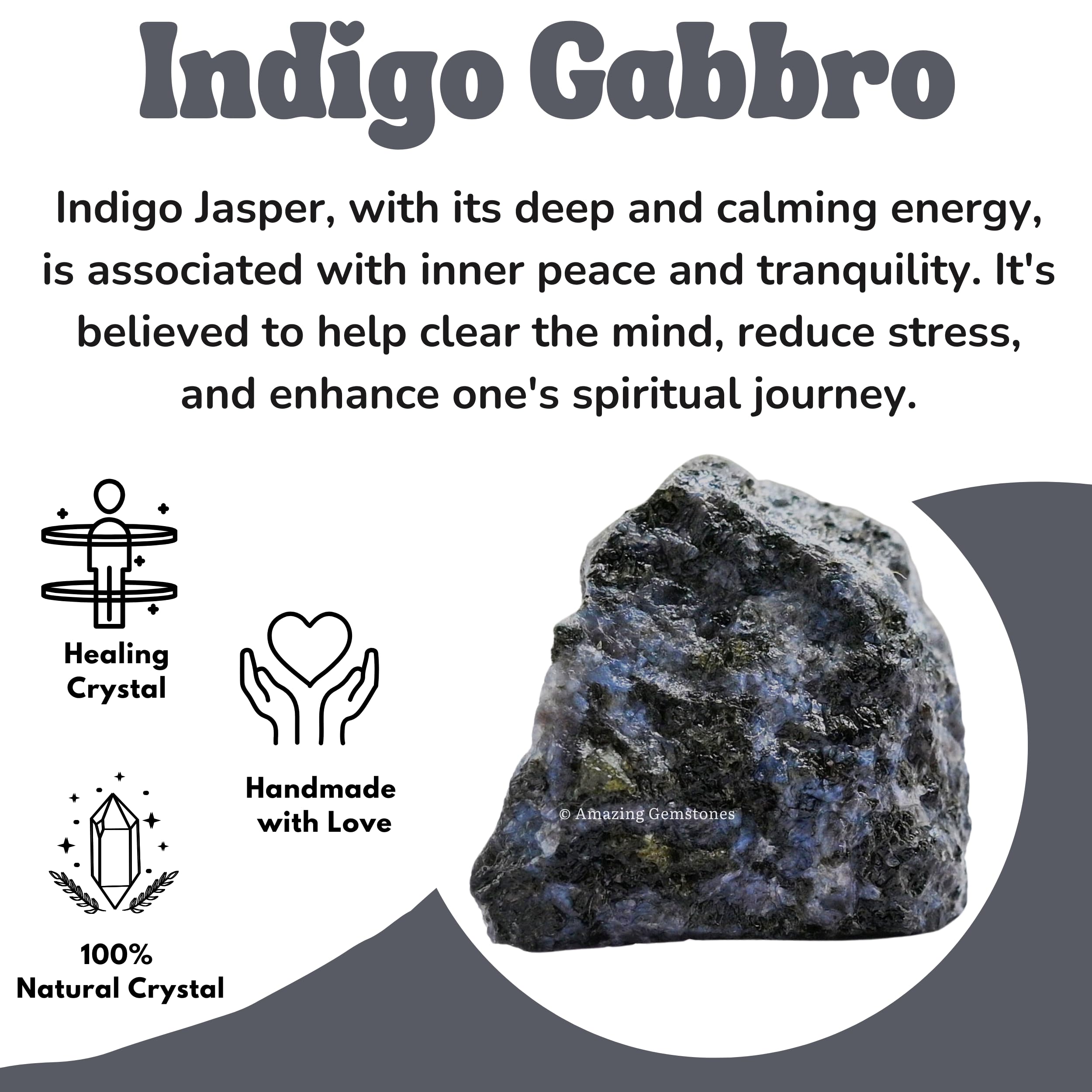 Natural - You will receive authentic raw stones crystals, indigo gabbro stone is often used for meditation and self-reflection to promote mental clarity and emotional balance.