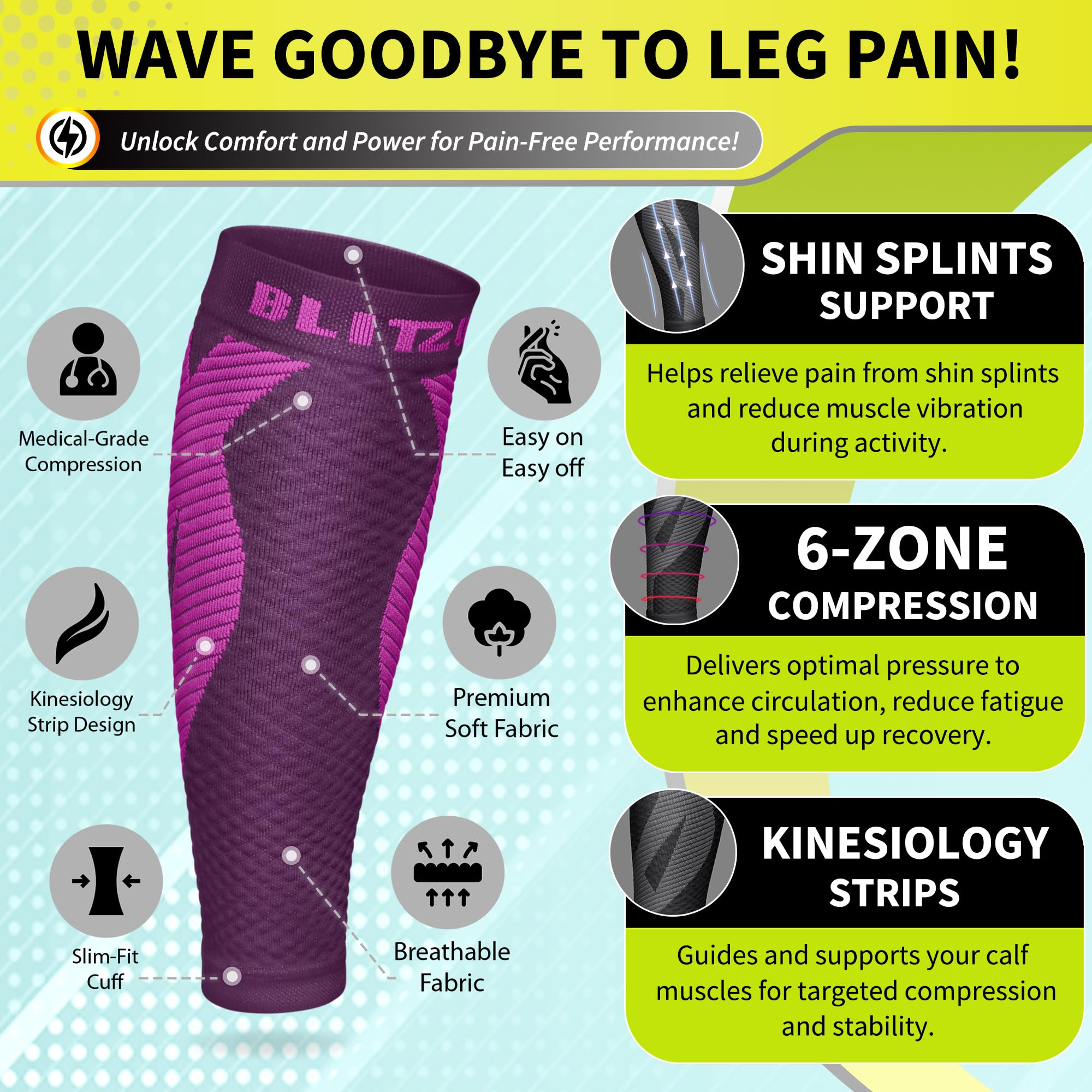 Effective Compression for Swelling & Varicose Veins Relief: The BLITZU Calf Compression Sleeves feature graduated compression to improve blood circulation, reduce swelling, and alleviate discomfort caused by varicose veins and pregnancy-related leg swelling, making them perfect for nursing mothers and individuals with circulation issues.
