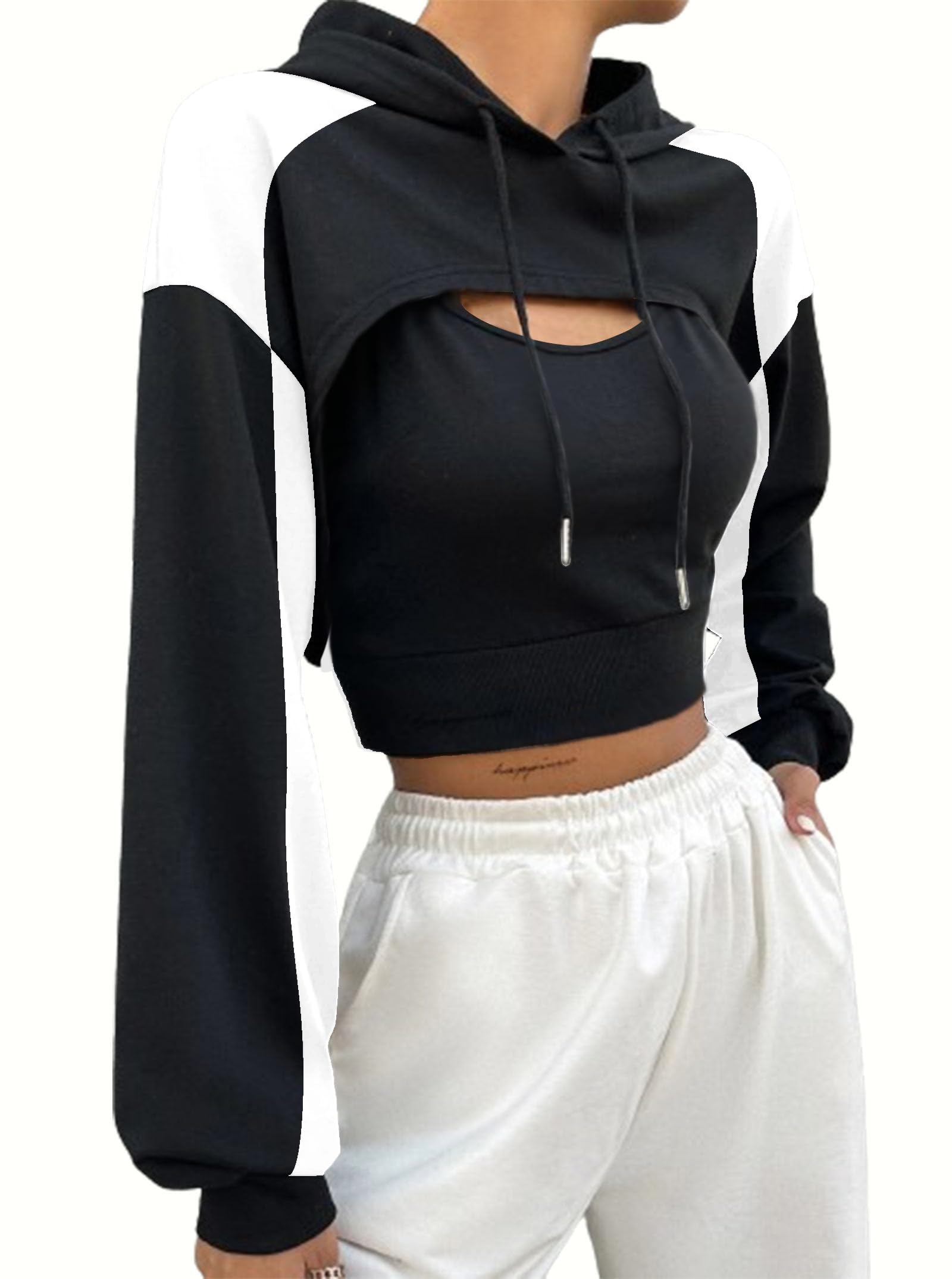 FEATURES: Crop hoodies for women, long sleeves, cropped length, drop shoulder, loose fit, drawstring hooded, one piece, workout crop tops for women