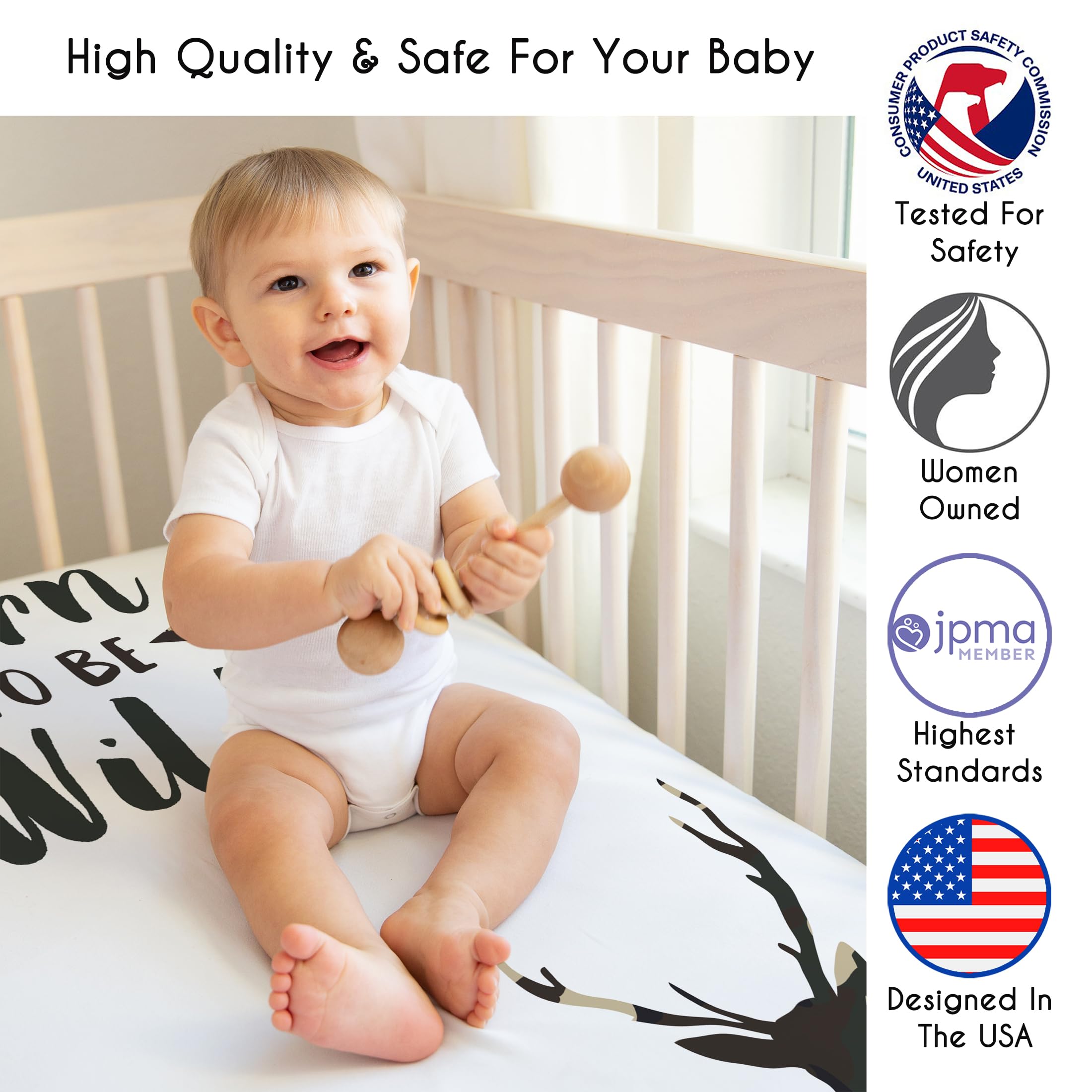 DESIGNED IN THE USA: By real parents who understand the need for comfort, practicality & style. Sweet Jojo Designs is a small, women owned business. The mom's on our team know a crib mattress sheet is first priority for your baby essentials to ensure a restful night of sleep. We use top fabrics and designs to create soft crib sheets that are stretchy and comfortable for your infant or toddler. We've studied the latest trends in woodland crib sheets for baby boy to bring you the finest product.