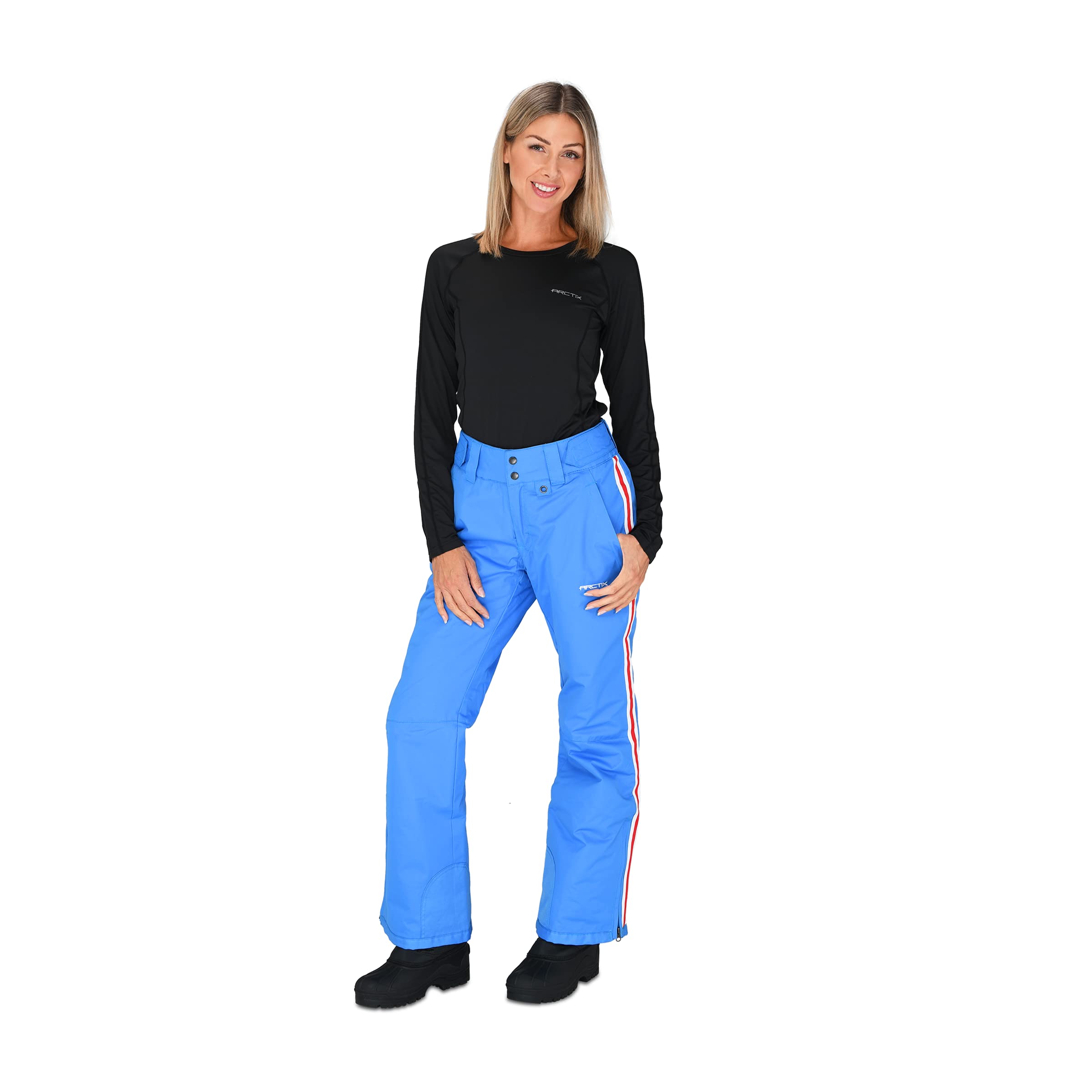 Description Season after season, the 1800 Arctix Women's Insulated Snow Pants serve as an outstanding value priced ski/snow pants and a versatile cornerstone of the Arctix line. These pants feature a 100% Polyester Dobby shell with ThermaLock W/R + W/P 3000mm Coating, offering a maximum degree of durability and protection from the elements, while allowing a full range of motion. 85 grams ThermaTech Insulation offers warmth in a lightweight, low bulk garment, keeping you warm at temperatures from -20° to +35° depending on your level of activity. DWR finish (Durable Water Repellent) helps repel water from fabric surface. The adjustable waist ensures a comfortable fit, while boot zippers make them easy for on and off access over boots. Boot gaiters with grippers form a seamless integration with the boots to keep the warmth in, and the moisture out. These relaxed fit pants also include 600 Denier Ballistic reinforced ankle, scuff and hem guards to hold up against daily wear & tear, and conveniently has an O-ring for keys, gloves and/or lift tickets. The pants provide zippered hand warmer style pockets, a zippered fly, and belt loops. They are water and wind resistant, and are machine washable. Sizing options include a Short 29" inseam (5'1" – 5'4" heights), Regular 31" inseam (5'5" – 5'8"), and Tall 33" inseam (5'9" – 6'1").