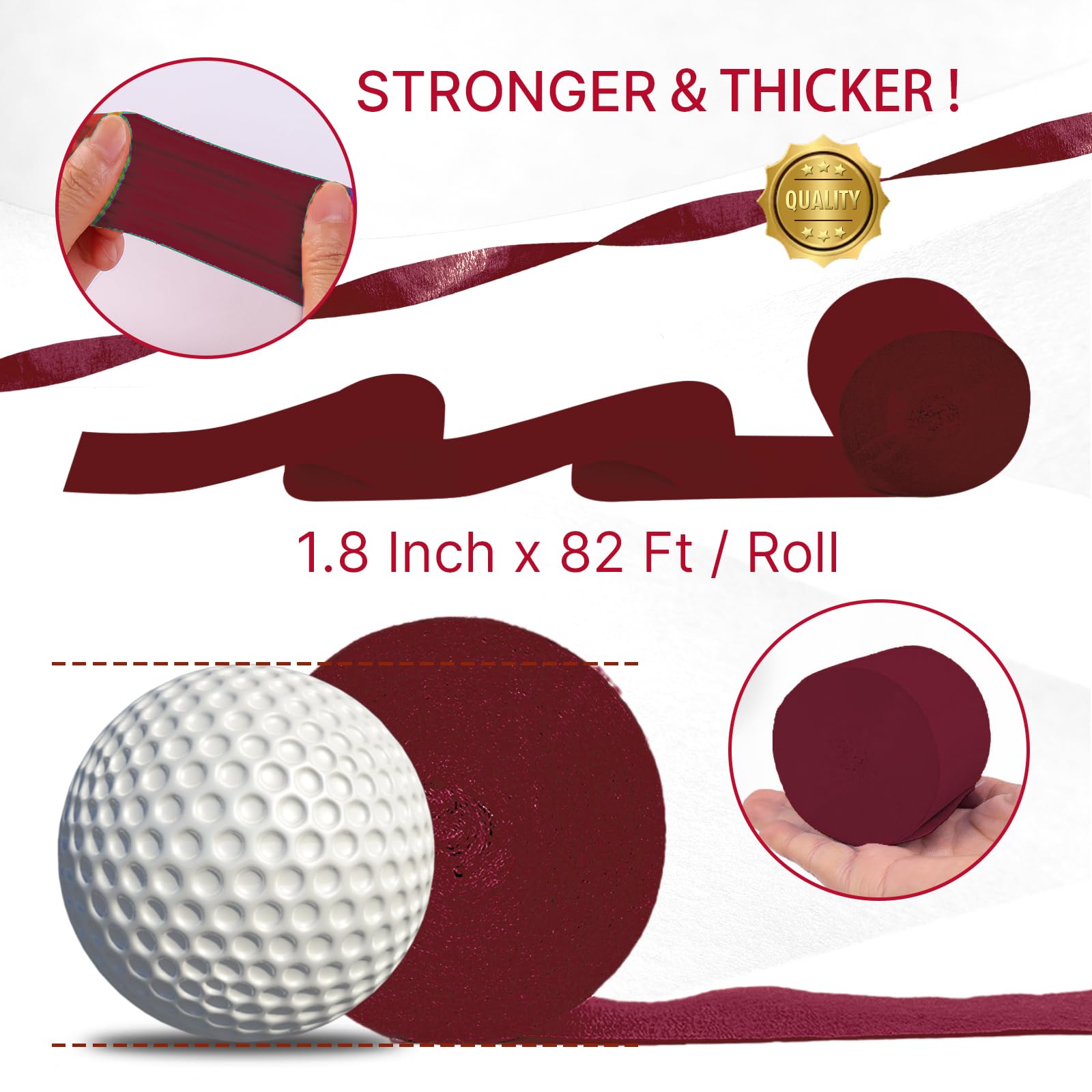 Package Included:You will receive 4 precisely rolled party crepe paper in burgundy colors, each roll is 1.8 inch x 82 ft, these crepe paper streamer rolls are enough for your baby shower decoration, wedding decoration and engagement decoration needs