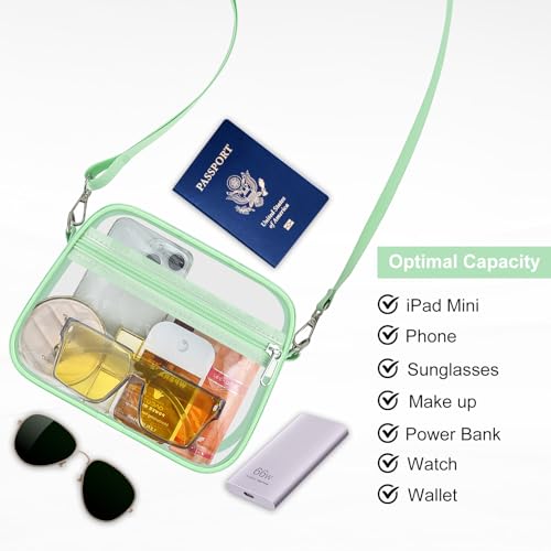 Suitable Capacity: This messenger bag has a main compartment can hold a small wallet, phone, lipstick, tissues, and sunglasses, while the front pocket can hold keys, cash, cards, and tickets, making our clear bag an essential for your concert outfit.