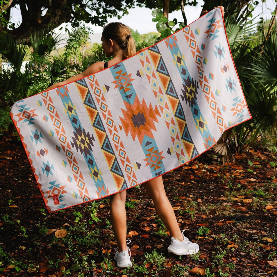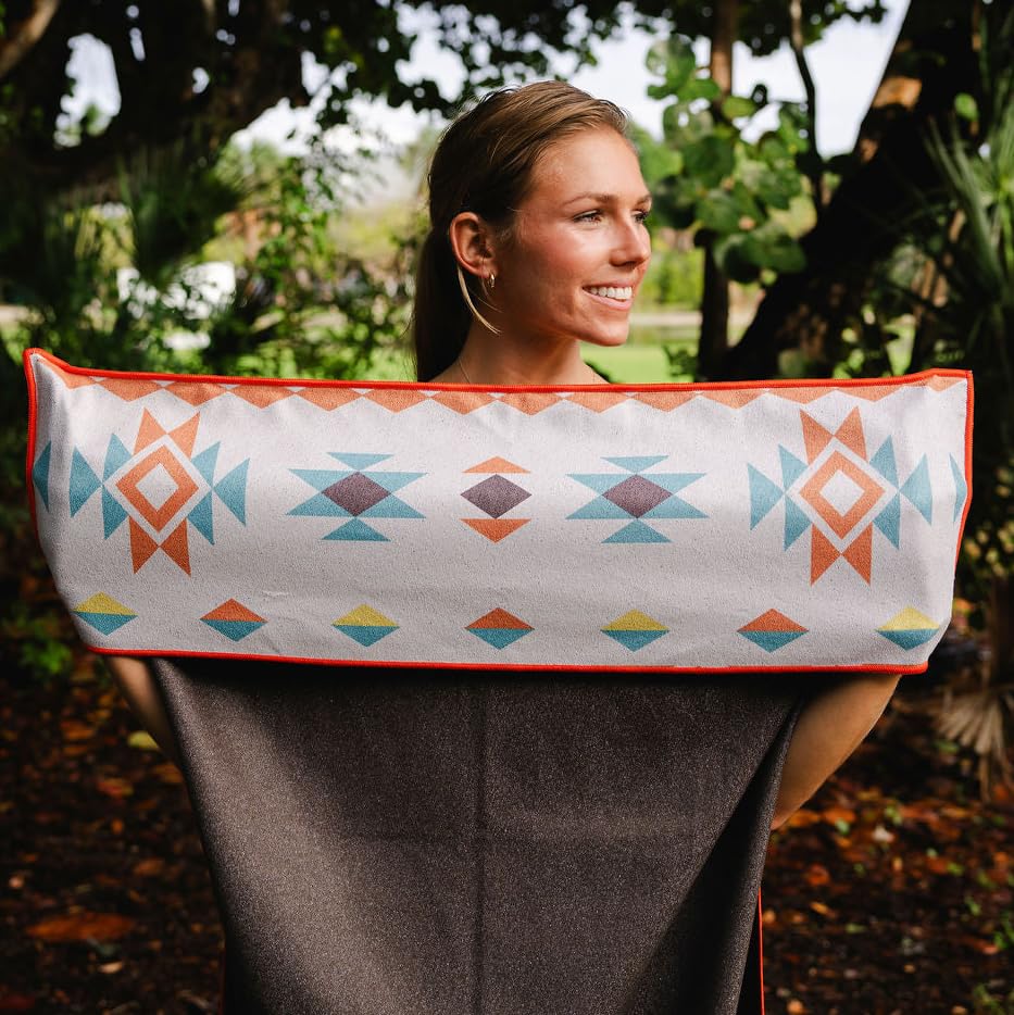 FIT & SIZE: Each towel is 62.5” X 32”and features a 10” x 32” pocket at the top to fit over a car seat headrest, beach chair or yoga mat.