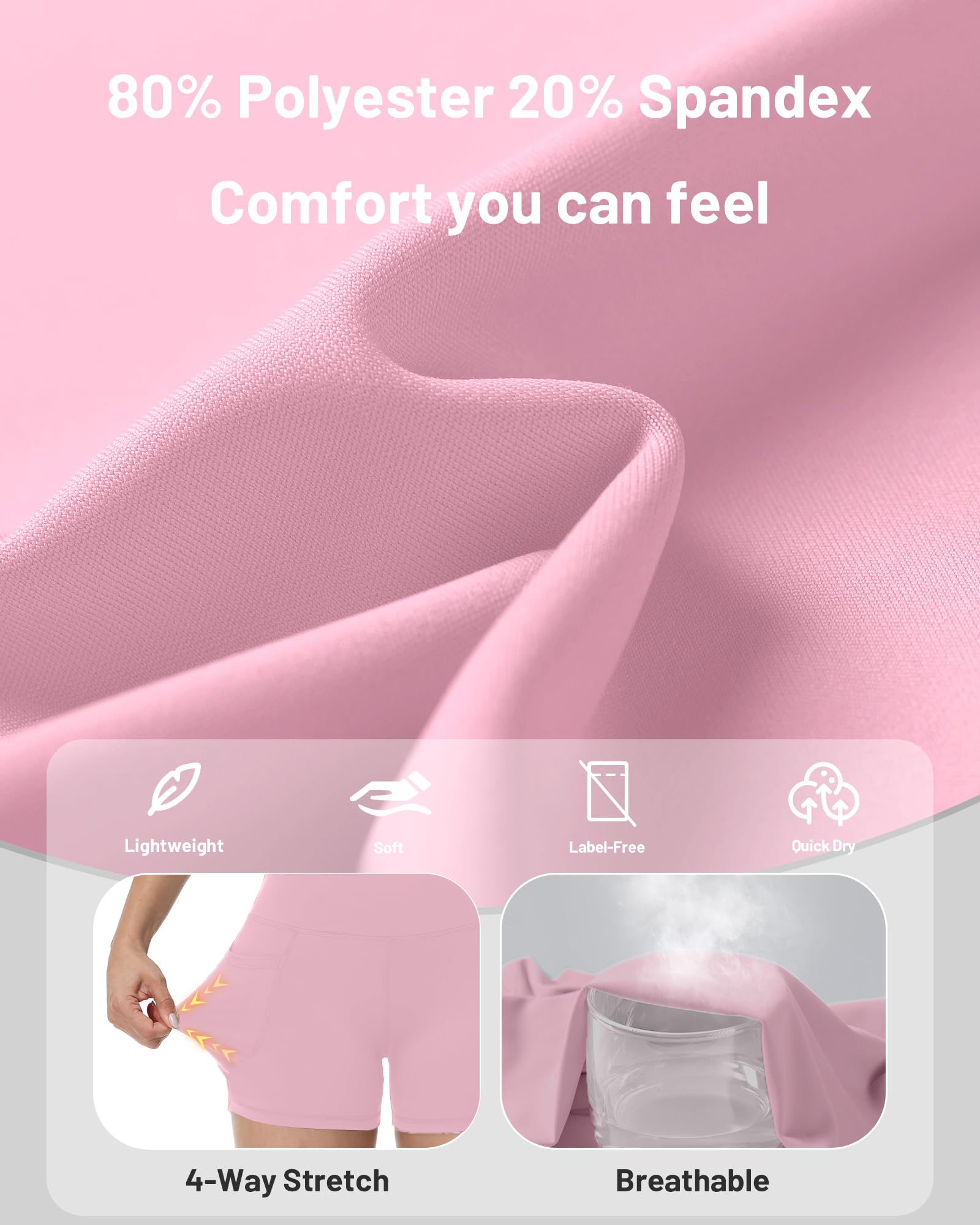 Breathable & Stretchy Fabric: Made with 80% polyester and 20% spandex, these womens biker shorts offer a silky-soft feel, stretch, moisture-wicking, and breathability for ultimate comfort during workouts