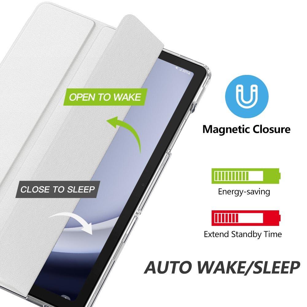 Auto Wake/Sleep: Built-in magnetic strip, automatically wakes or puts your tablet to sleep when the lid is opened and closed. this Tab A9 Plus Case Protects and extends battery life