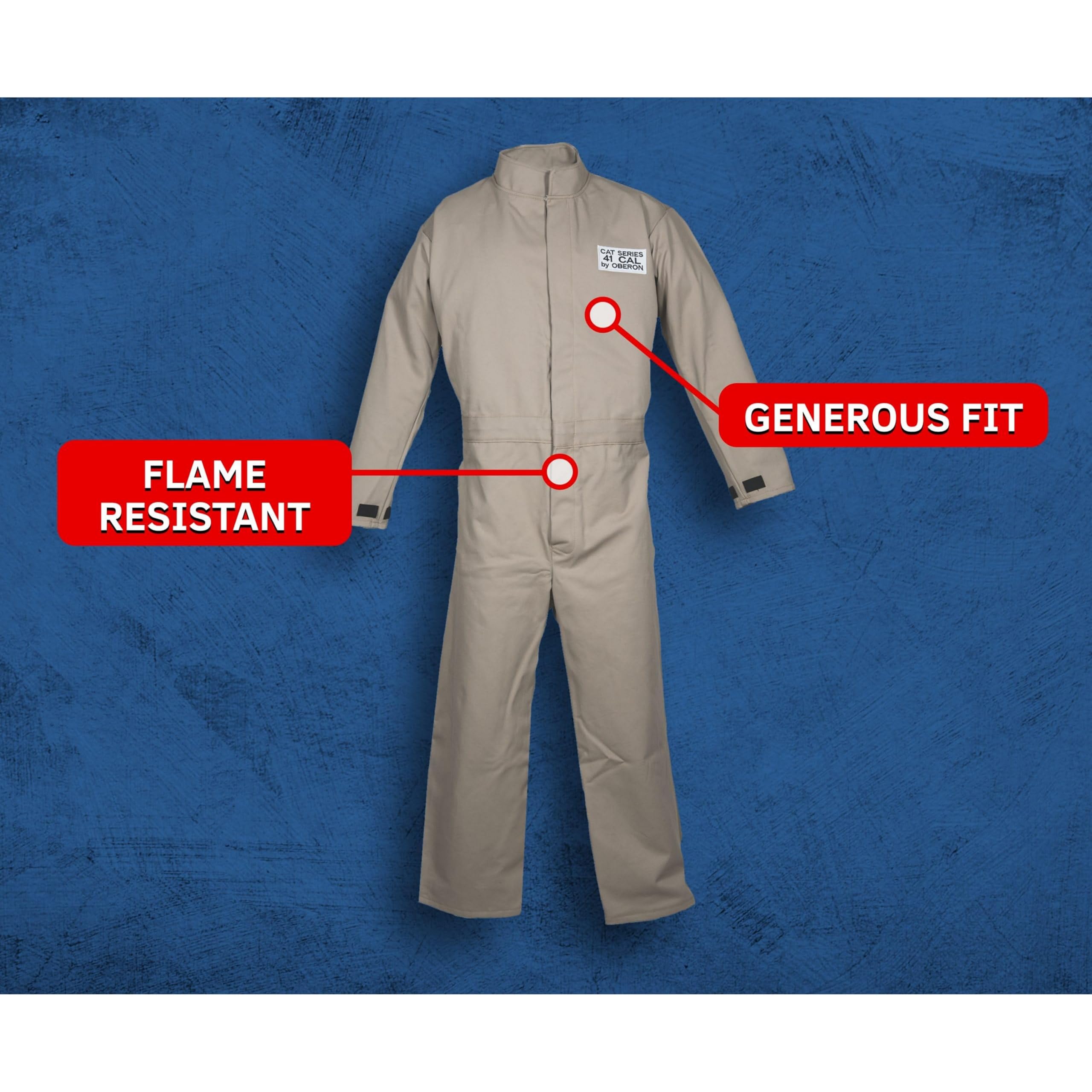 MAX DURABILITY & PROTECTION: Coverall suit is made from arc rated flame resistant treated cotton with a generous fit.