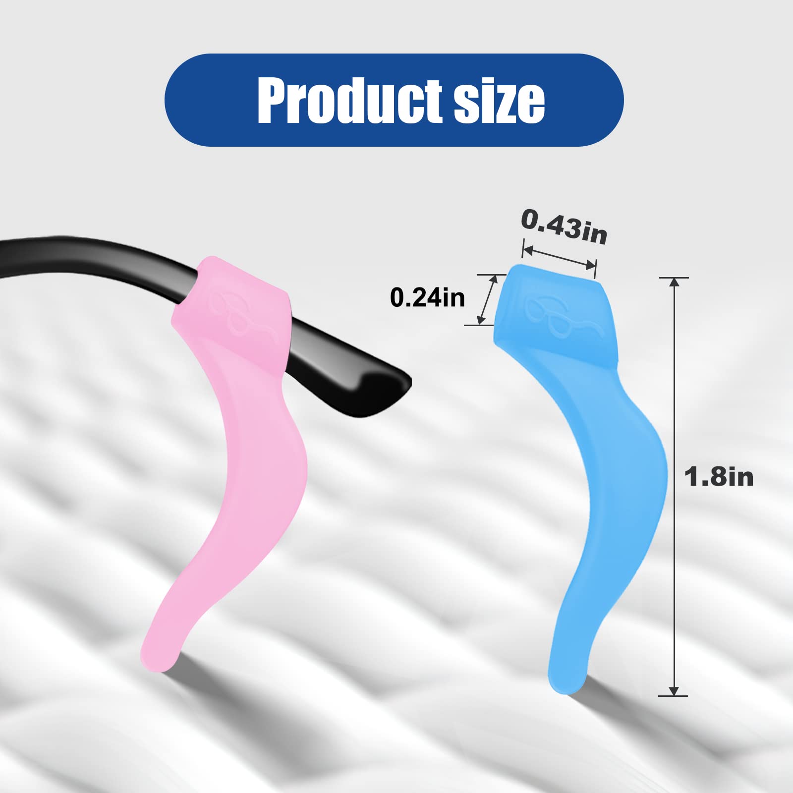 Size and Quantity: 4.2 * 1.1 * 0.25cm, you will get :5 pairs BLACK ,5 pairs CLEAR, 4 pairs BLUE and 4 pairs Pink of silicone ear hook grips.total 18 pairs eyeglass ear grips of glasses