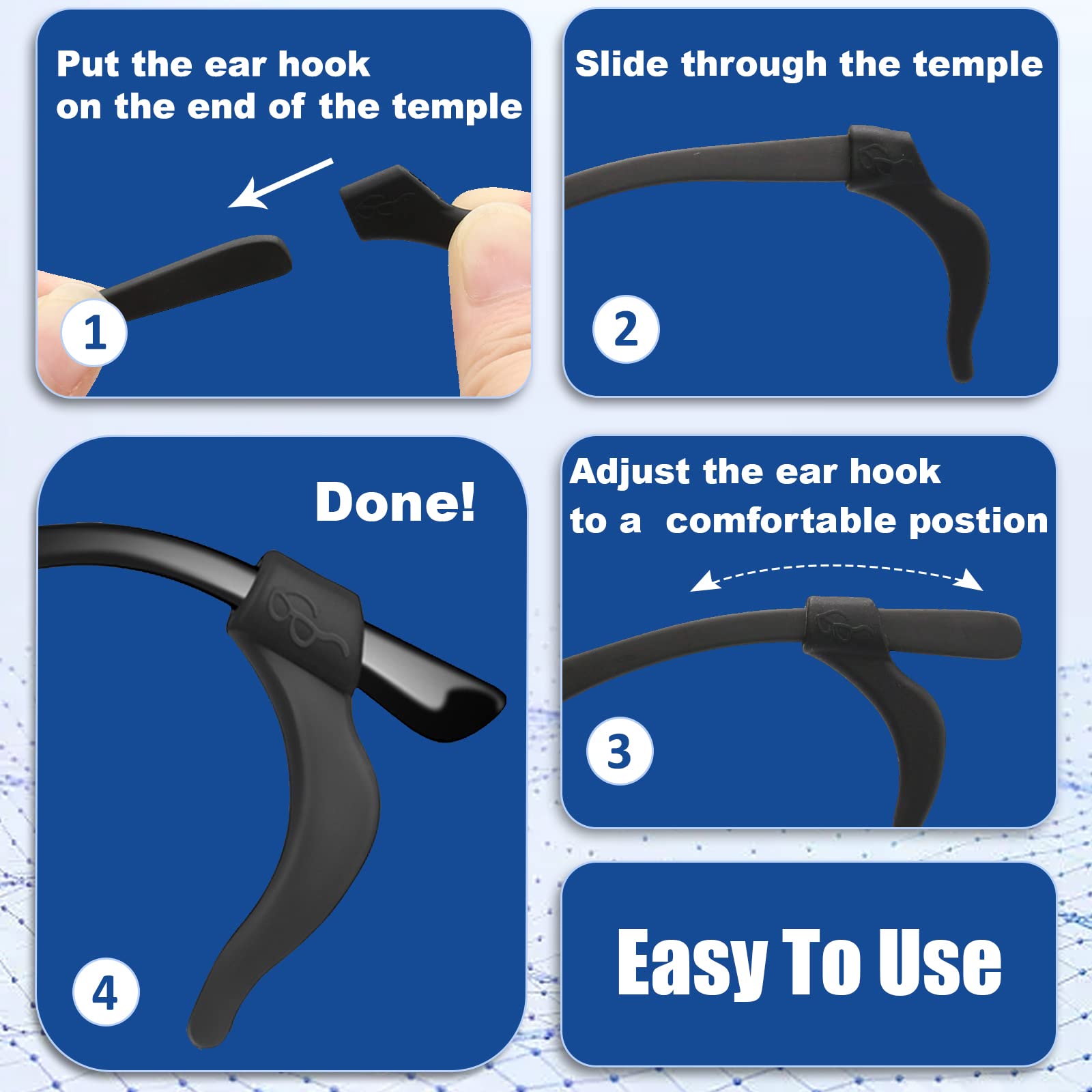 Anti-Slip: Never worry about missing your glasses or sunglasses again. Our special silicone ear grips of glass to keep a tight grip on your glasses so you can do anything freely