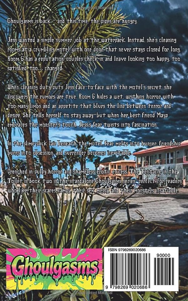 Ghoulgasms is back — and this time the pipes are hungry. Jess only wanted a summer job at the waterpark. Instead, she’s stuck in a rundown motel where one room has a reputation: couples check in and leave looking… different. Too happy. Too satisfied. Too changed. When cleaning duty puts Jess face-to-face with the motel’s secret, she discovers the rumors are true. Room 6 hides a wet, writhing horror that shouldn’t exist — a creature with too many limbs and an appetite that blurs the line between terror and ecstasy. She tells herself to stay away. She tells herself she imagined it. But when her best friend Maya gets assigned to the cursed room and embraces the monster’s touch, Jess can’t resist any longer. In the slime-slick lair beneath the motel, fear melts into need, friendship turns to something more, and surrender becomes inevitable. Drenched in pulpy horror and shameless erotic excess, The Tentacle in the Toilet is book two in the standalone Ghoulgasms series — for readers who like their scares campy, their sex messy, and their monsters insatiable - just like they were for Halloween in the 90's!