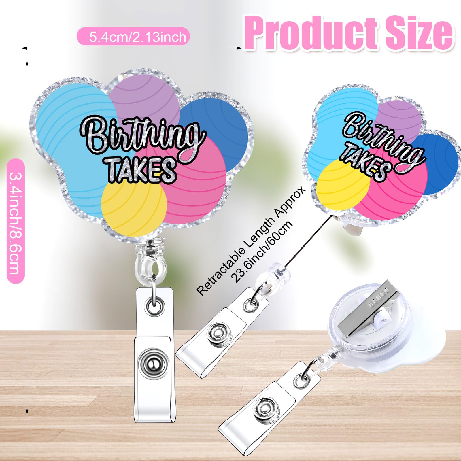 Glam up with Glitter Acrylic Material: snap out of the dullness with our funny retractable badge holder, made of glitter, acrylic material; With these shiny companions by your side, every day will feel like a walk on the red carpet; Just hold on to these little stars and let your shine trail behind