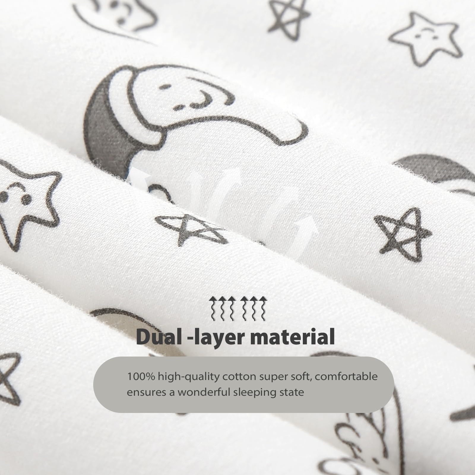 【Organic Cotton Outer】 Ultra Soft and Cozy Hand-feel outer with a soft polyester filling.Perfect for Autumn and Winter use.Generous sack design allows room for kicking, but cannot be kicked off so baby stays warm all night.