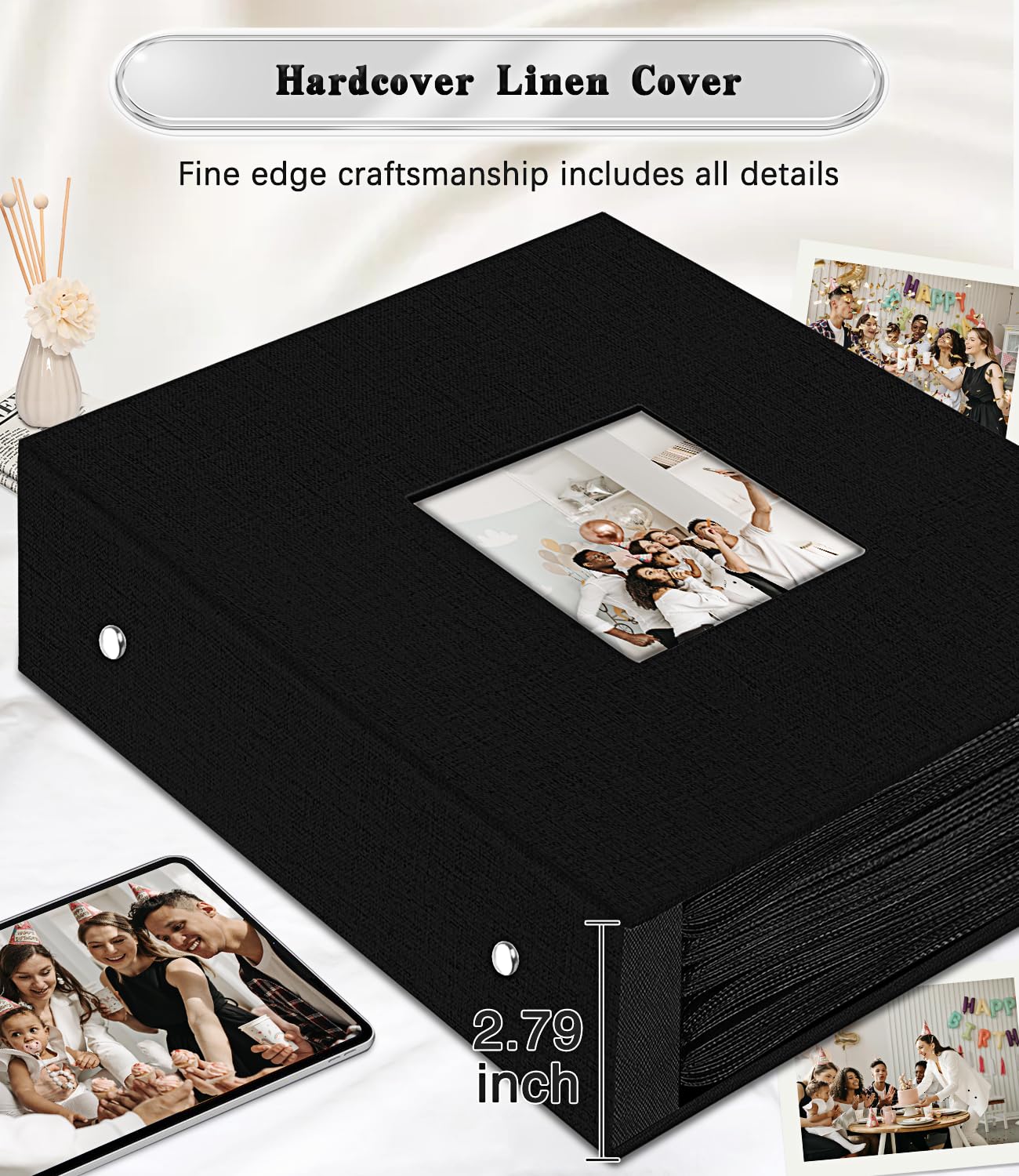 💖 Exquisite Window Design: This 4x6 photo album cover is wrapped in high quality linen, the classic linen cover not only adds vintage sophistication, but also ensures durability and protects your precious photos.The cover of the album has a flexible openable window with replaceable window photos (5.85 inch), customised to change your personal theme album.